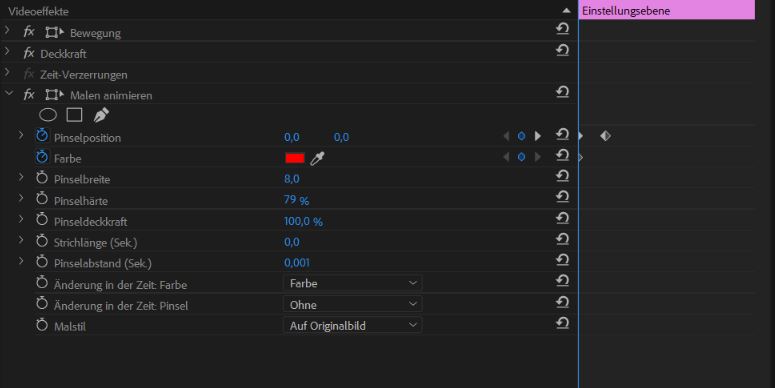 Die erste Ebene funktioniert ohne Probleme. Die Linie wird während das Video läuft gezeichnet. Bei der zweiten Linie hab ich das Problem, dass die beim ersten Keypoint einfach auftaucht, anstatt vom ersten bis zum zweiten Keypoint gezeichnet zu werden. Habt ihr ne Idee, woran das liegen kann, dass die zweite Linie nicht gezeichnet wird, sondern einfach auftaucht?