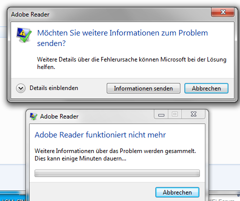 Ärgere mich seit ein paar Wochen mit einem sehr lästigen Problem: mein Adobe Reader XI crasht jedes mal wenn ich ihn starte mit der folgenden Fehlermeldung von Windows.