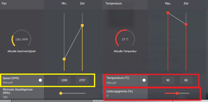 Was war denn eigentlich der letzte AMD Treiber, bei welchen man "Min." und "Ziel" für Lüfter sowie "Max." und Ziel" für Temperatur noch manuell einstellen konnte? Siehe auch Datei anbei. Beim 19.1.1. geht das ja nicht mehr, oder finde ich die Einstellungen nur nicht?
