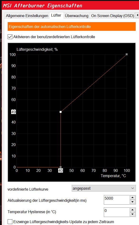 Bis 40°C regelt der Treiber, darüber msi AB nach deiner Kurve. Auf die Linie klicken um mehr Punkte einzufügen
