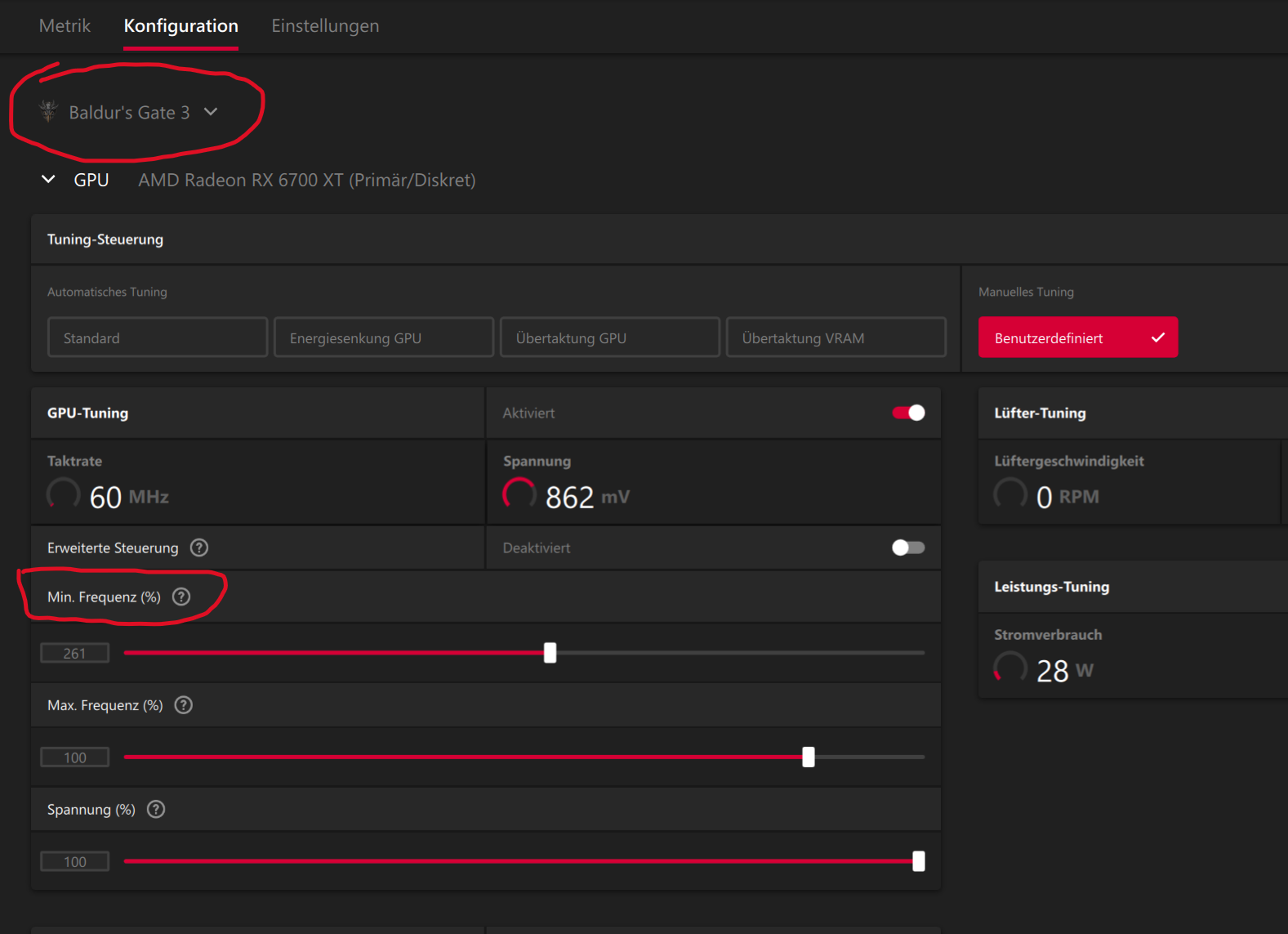 Ich bin neu bei AMD und damit natürlich auch bei Adrenalin. Ich hab dazu mal ne Frage. Bei Nvidia, konnte ich im Treiber der Grafikkarte sagen sie soll bei Spiel XY IMMER mit dem maximalen Takt fahren. Also nicht runter skalieren.