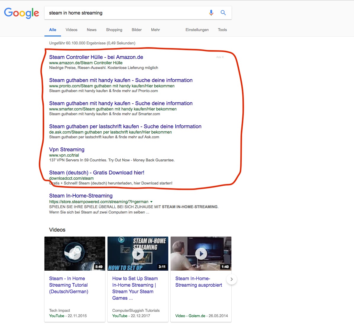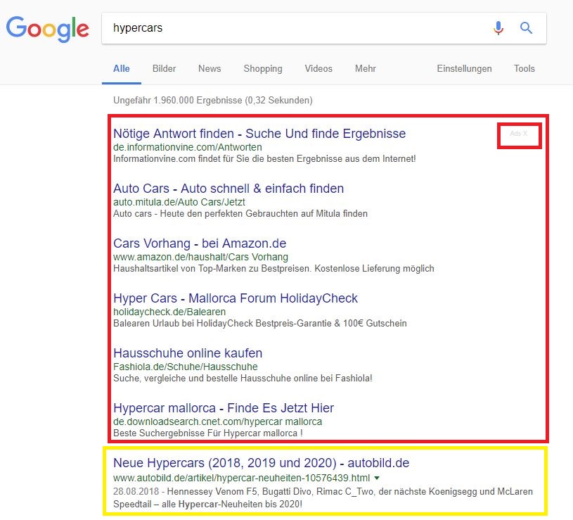 ich brauche mal eure Hilfe. Ich bekomme immer wieder Anzeigen namens "Ads X" bei meinen Suchanfragen bei Google angezeigt. Es scheint mir als hätte ich mir in Chrome was eingefangen, allerdings habe ich absolut keinen Anhaltspunkt, woher das kommen kann. Leider weiß ich nicht ob es ggf. von einer Erweiterung stammt die ich installiert habe. Ich würde eigentlich sagen das diese seriös sind.