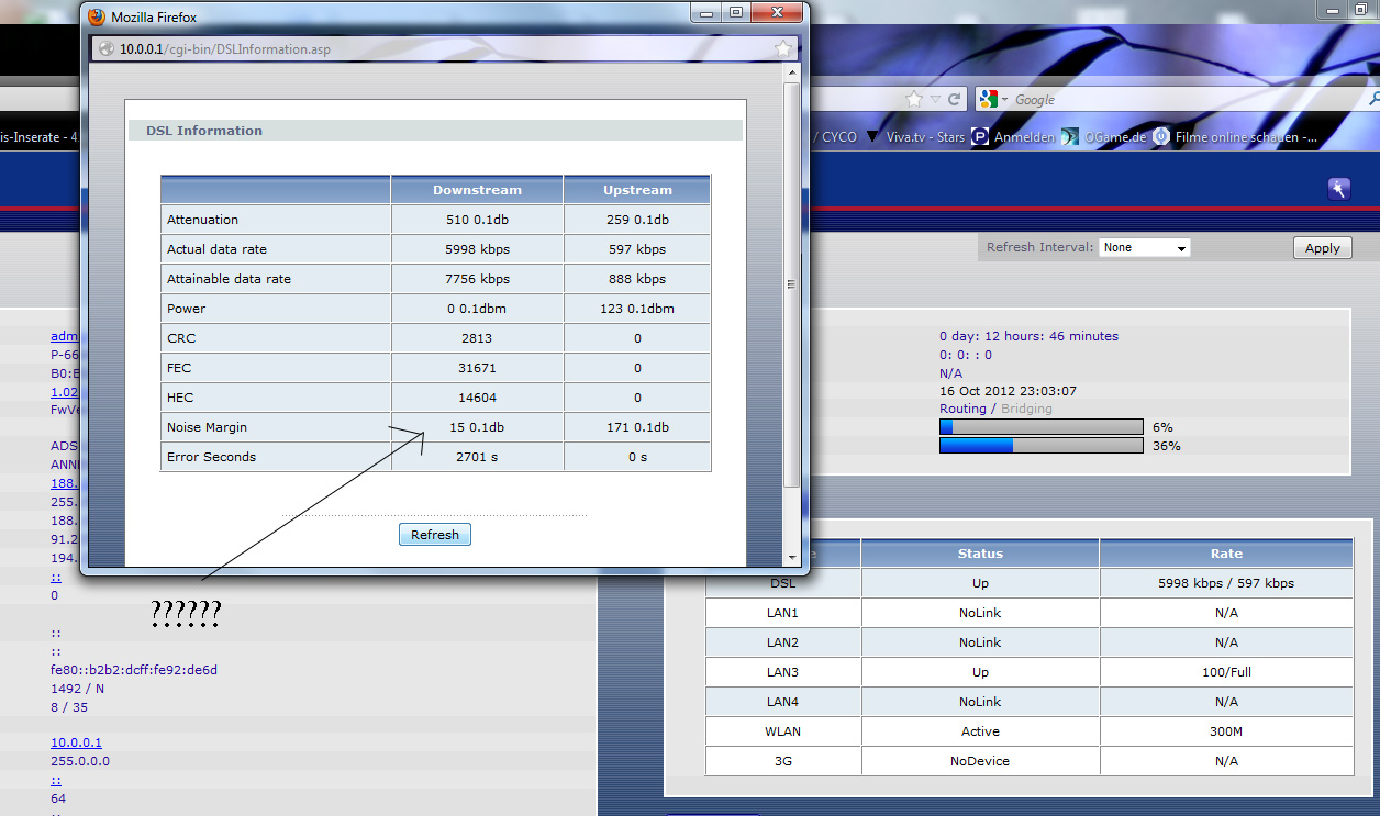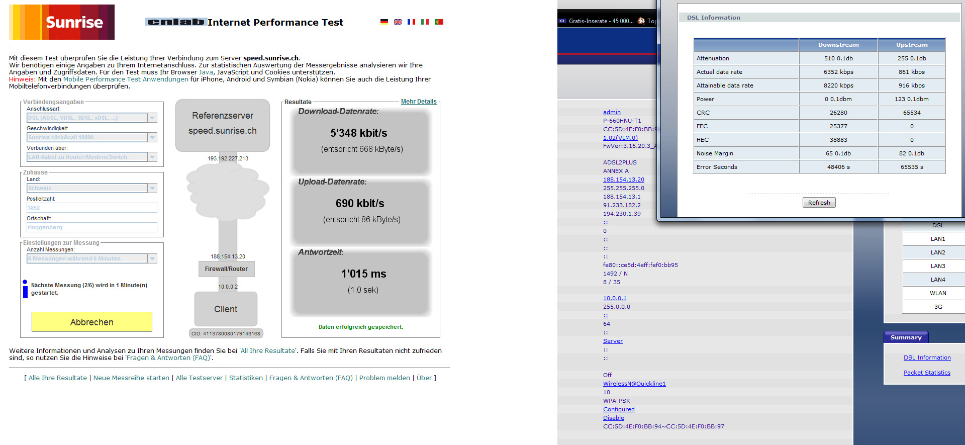 Jetzt hatte ich aber an bestimmten Tagen das Problem das ich unterbrüche hatte beim Surfen. Seit dem habe ich auch unzählige Bitfehler im Downstream.