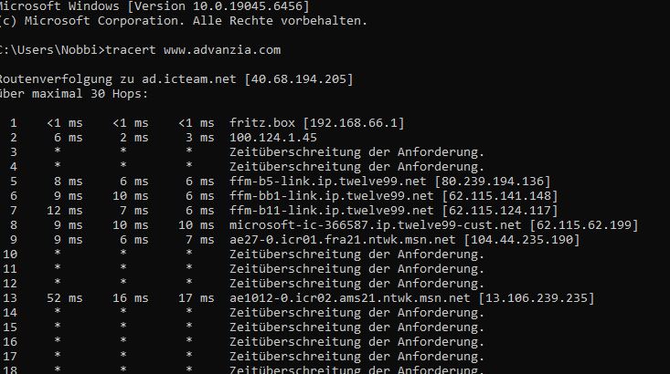tracert Advanzia.com ergibt das: