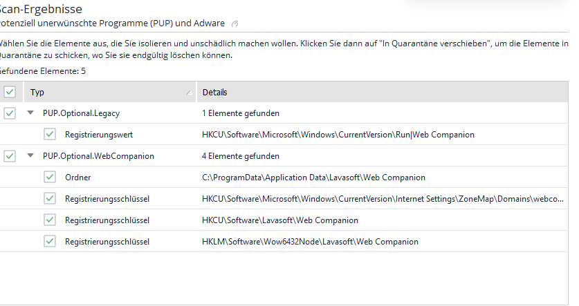ich nutzte für Win 11 neben dem Defender , manchmal den ADW Cleaner, der hat hier 5 sachen gefunden , aber keine ahnung was das sein soll . vielleicht könnt ihr mir das sagen