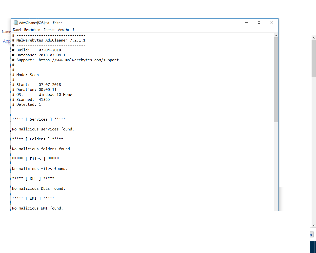 Ein Scan über Malwarebytes war allerdings negativ, da wurde gar nichts gefunden...!