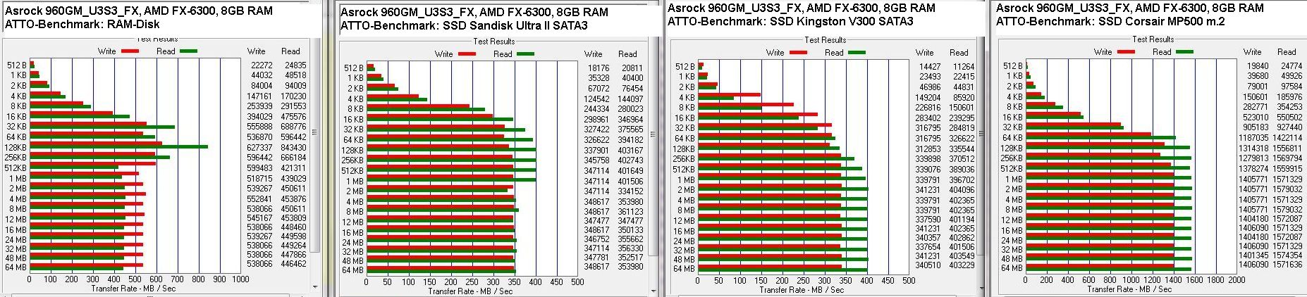 350 MB/s statt der möglichen 500MB/s auf einem Intel-System.