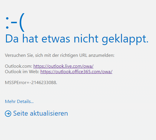 Wenn ich mich versuche unter z.B. hotmail.com oder outlook.com einzuloggen, erscheint danach im Browser stehts die folgende Seite: