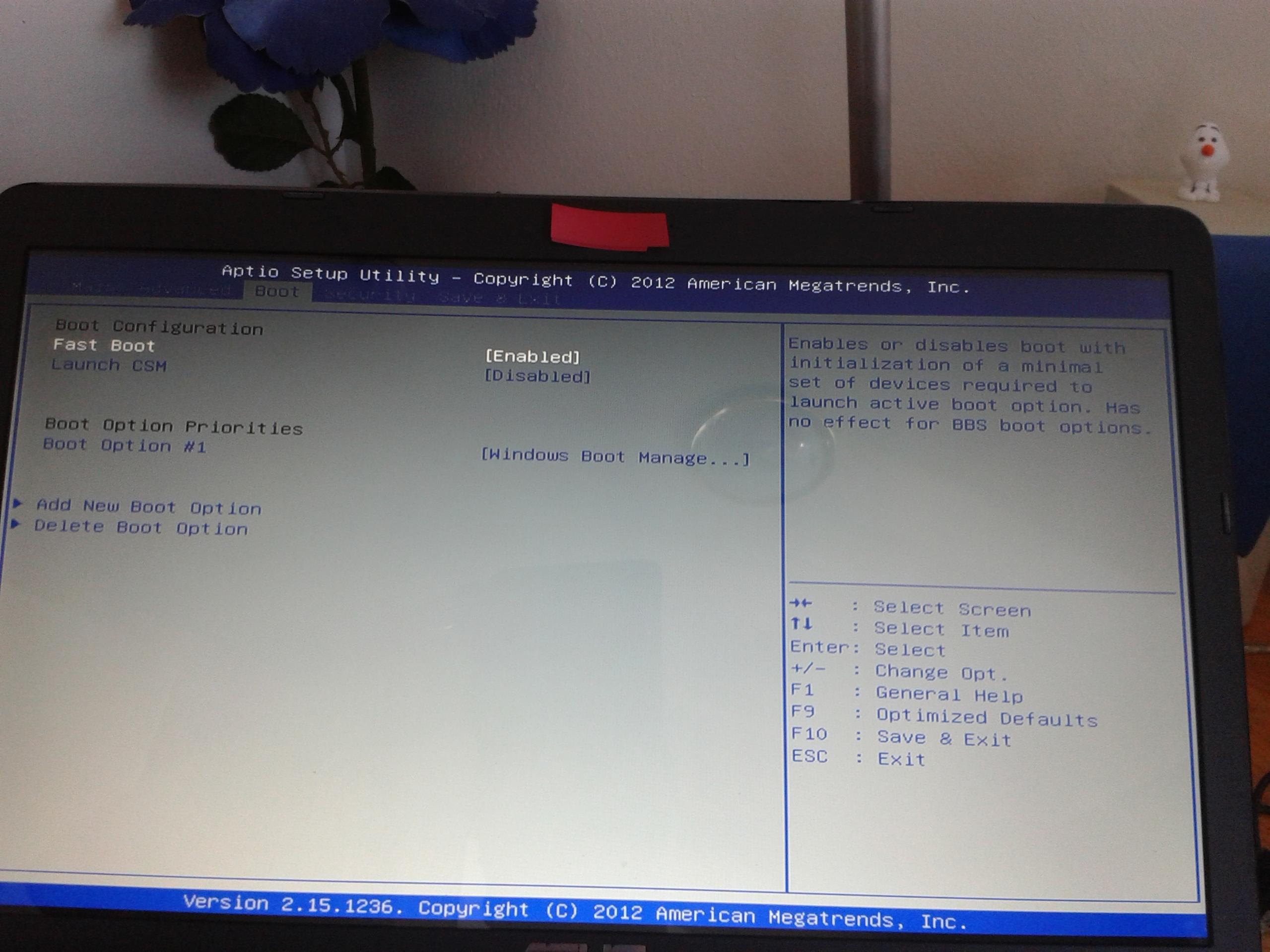 Anbei mal der BIOS Screen mit der Boot Option. Ich habe jetzt alles mal nachgeschaut, ich find's aber nicht. Vielleicht hat jemand von Euch Erfahrung mit dieser Version. Das wäre prima.
