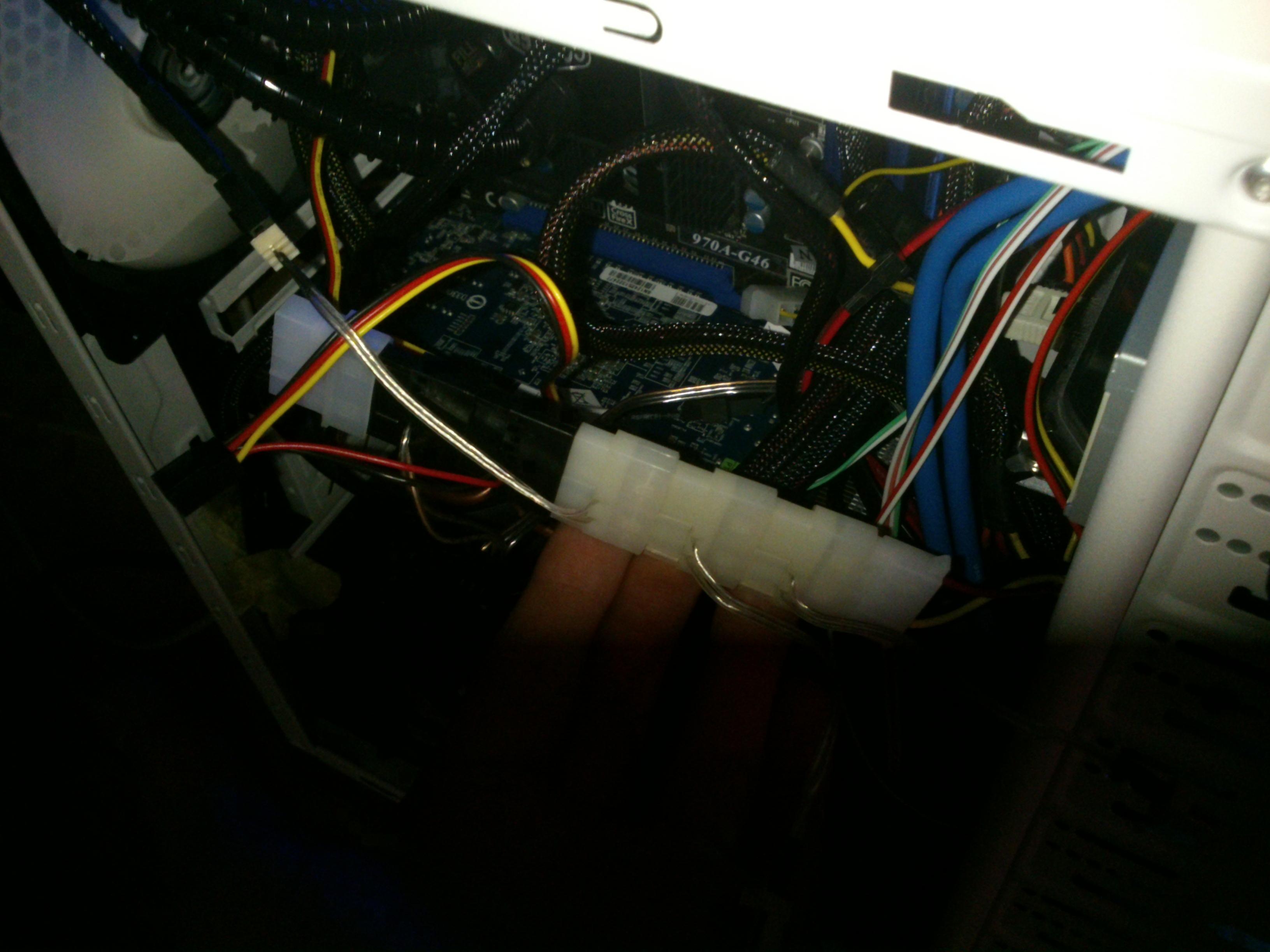 (weil der Lüfter molex ist.....)außerdem Vibriet das ganze Gehäuse weil ich 2 1800 RPM kühler ohne entkopplung habe...