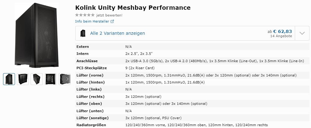 Billo- günstiges MB mit sparsamer CPU nebst Topblow-Lüfter und ohne Deckel-Lüfter.