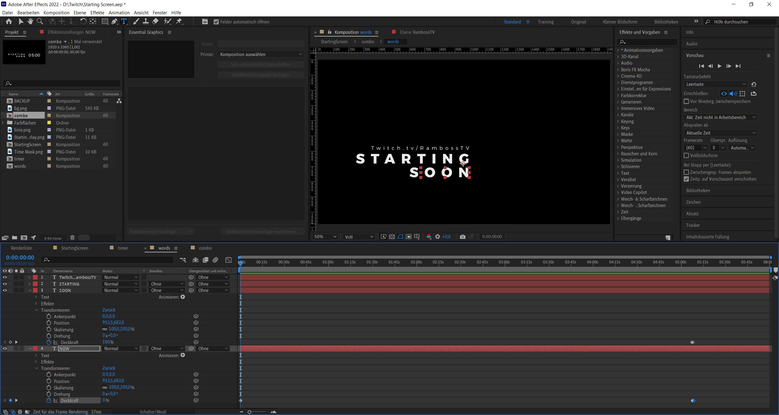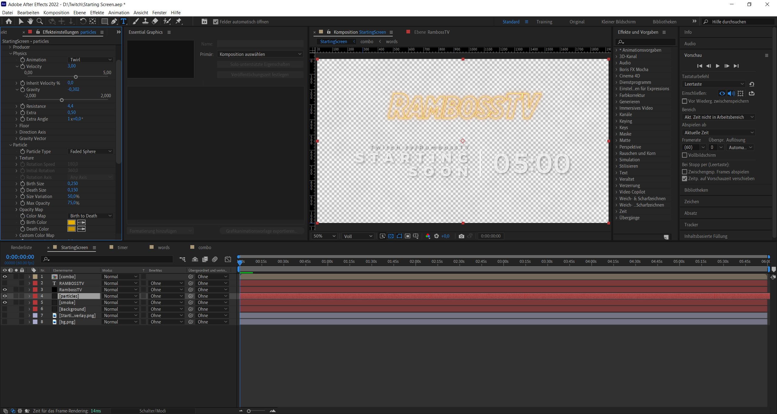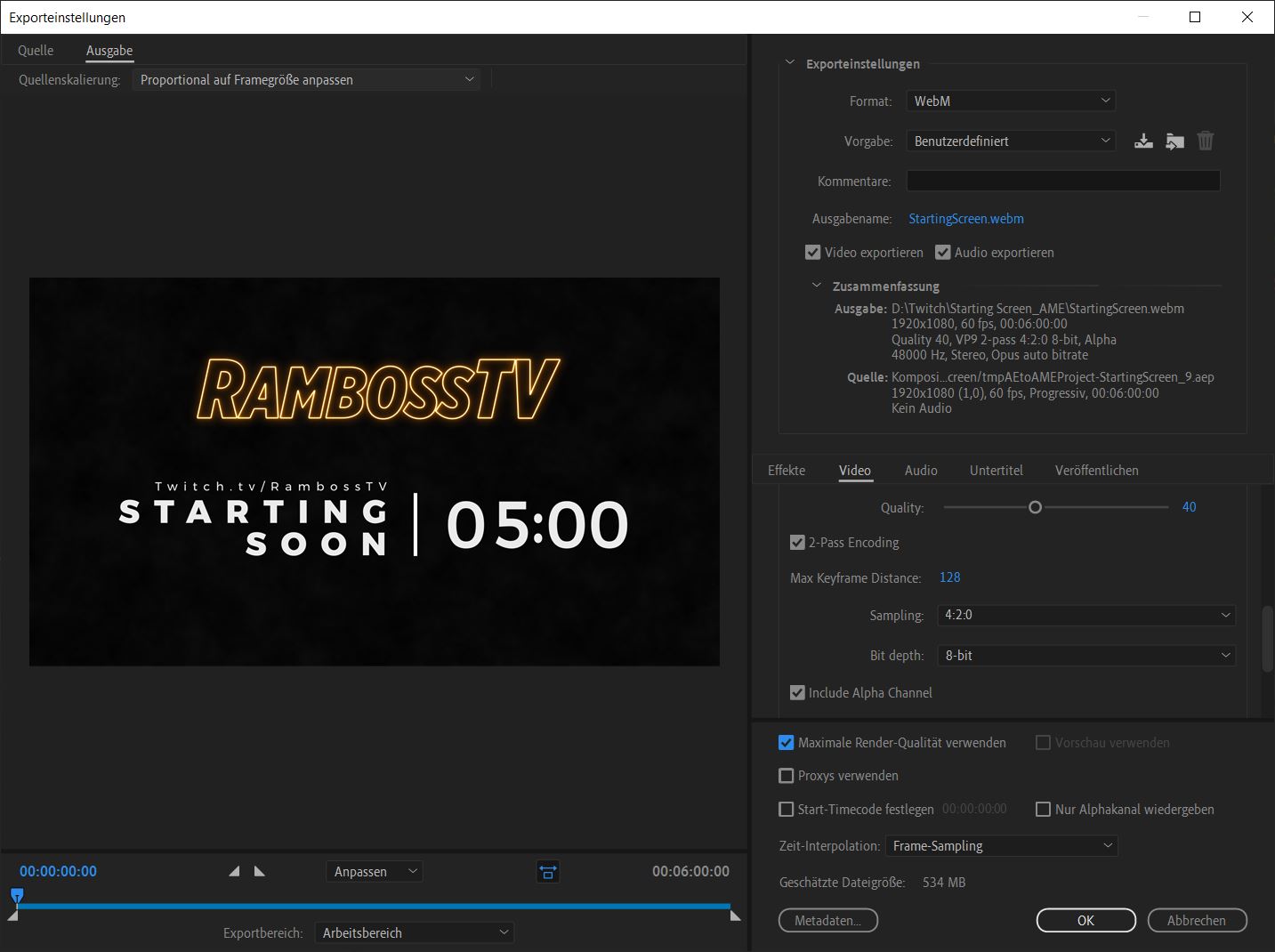 Ich habe ein 6 minütiges Starting Screen für Twitch erstellt und als ich es rendern woltle hat mich der Schalg getroffen.