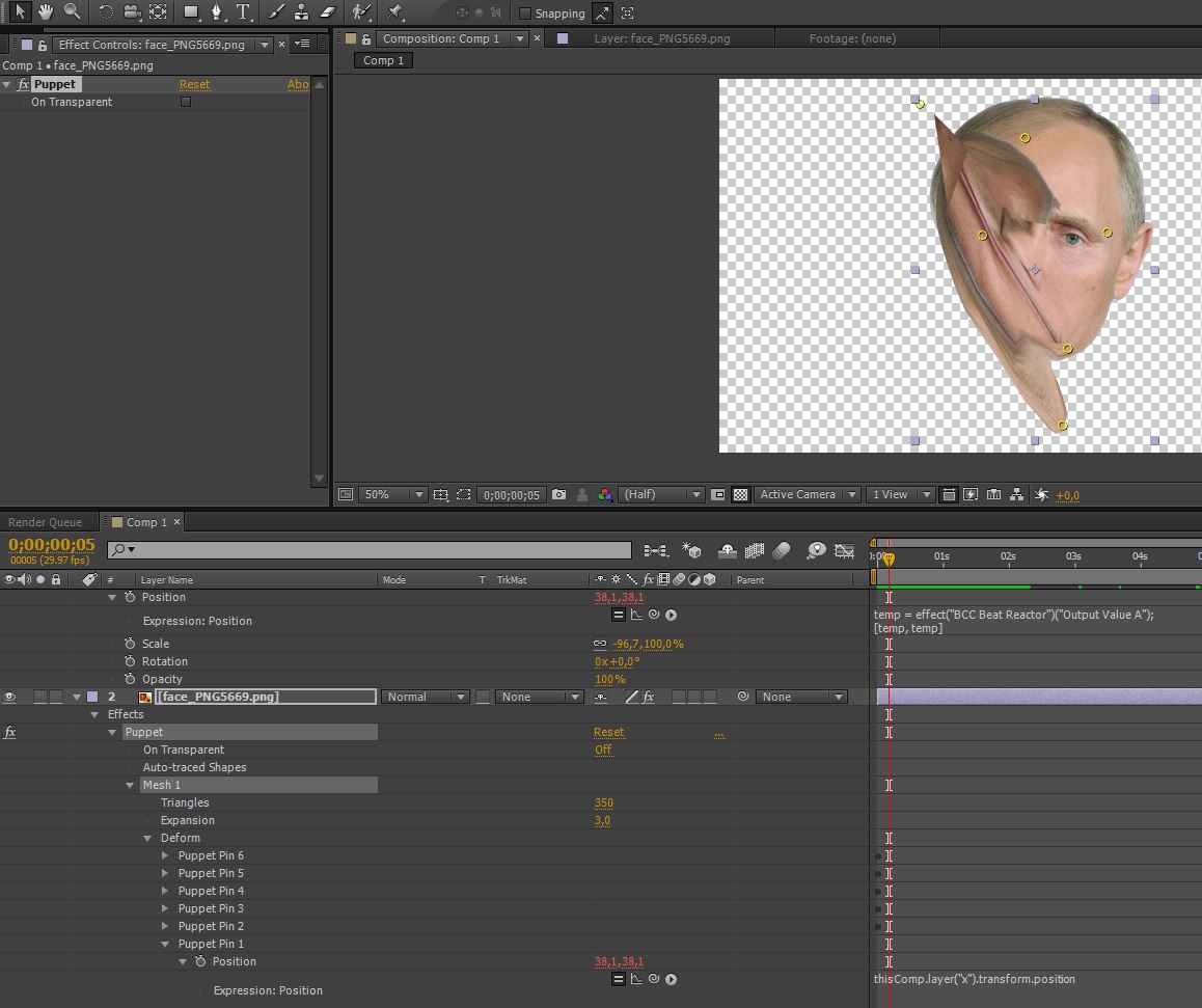 Was ich will: Eine Animation eines PNGs, bzw. wie im Fotobeispiel(ja, es ist Putin^^), zB den Mundwinkel (Puppetpin) mit