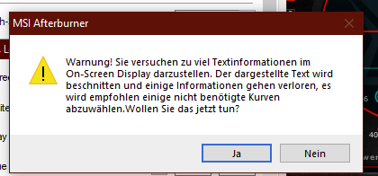Ich bin irgendwann von dem quirky Afterburner OSD ganz auf hwinfo umgestiegen. Dort das OSD zu konfigurieren ist etwas umständlicher, weil man es für jeden Wert in einem eigenen Menü machen muss, aber irgendwann hat man den Dreh raus und kann dann auch fast alles damit bewerkstelligen.