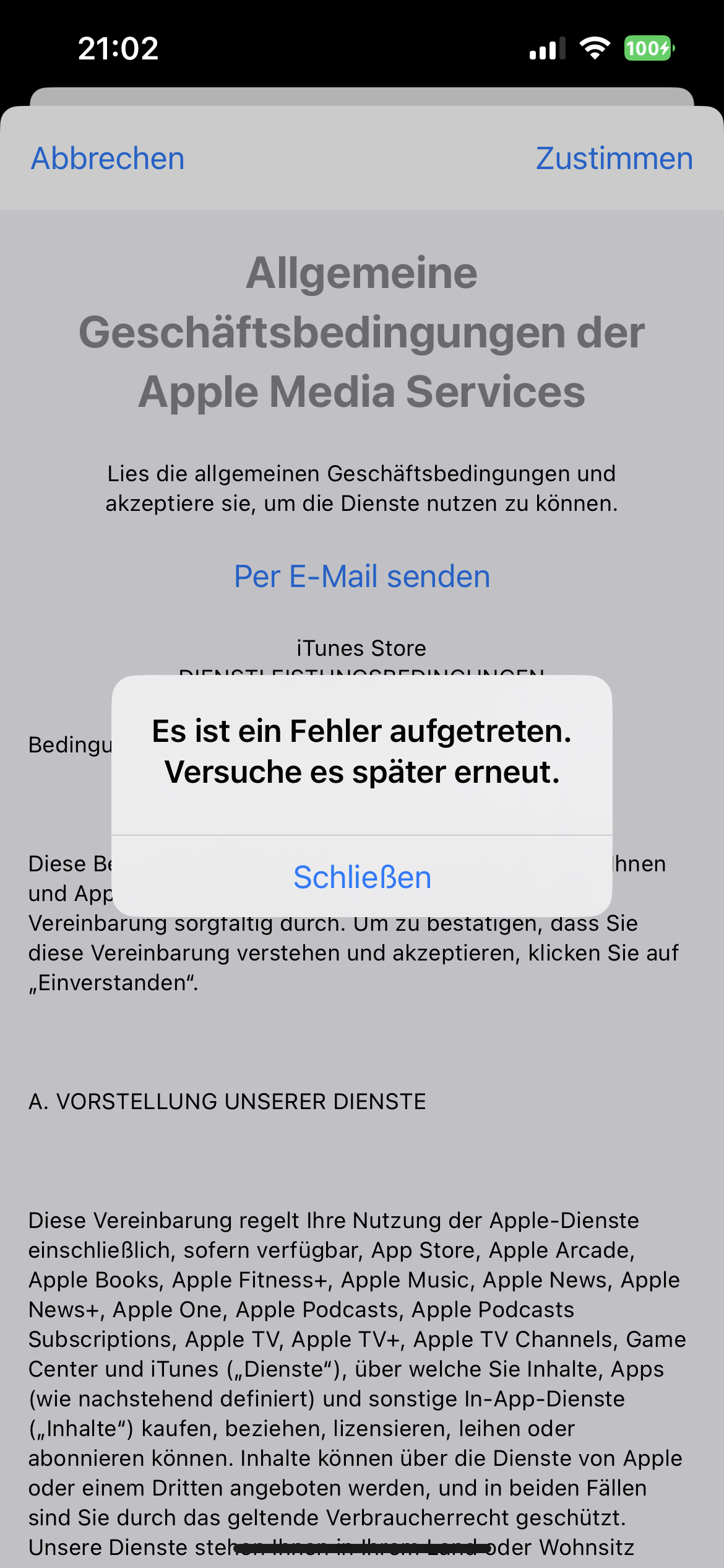 Hey, nach IOS 16 wollte ich zwei Apps herunterladen aber die AGBs können nicht bestätigt werden. Ich habe einen Hardware Neustart versucht. Immer wieder kommt die Fehlermeldung…
