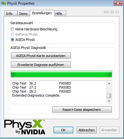 ok, ich weis bei einem 3dmark06 test das dort bei eingeschaltetem physx(der test wo die wolken sind) karo kästchen zu sehen sind. dort werden diese aber nicht angezeigt und es ändert sich auch bei spielen nichts, selbst bei mirrors edge ändert sich nichts