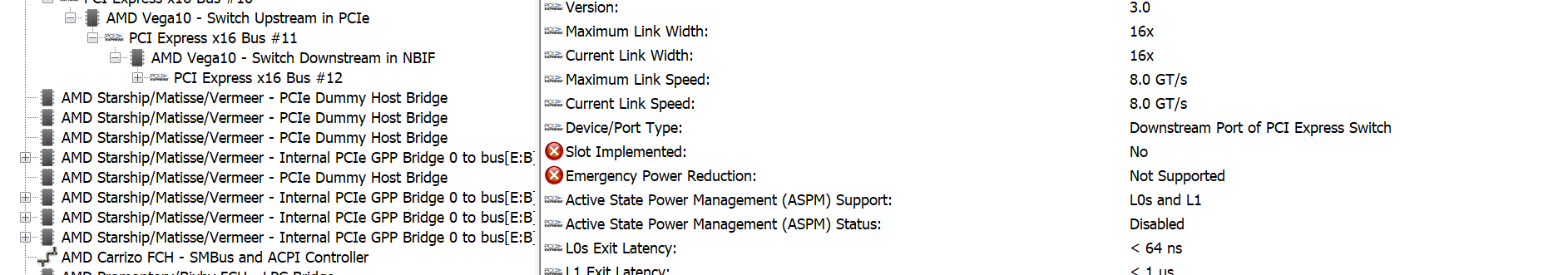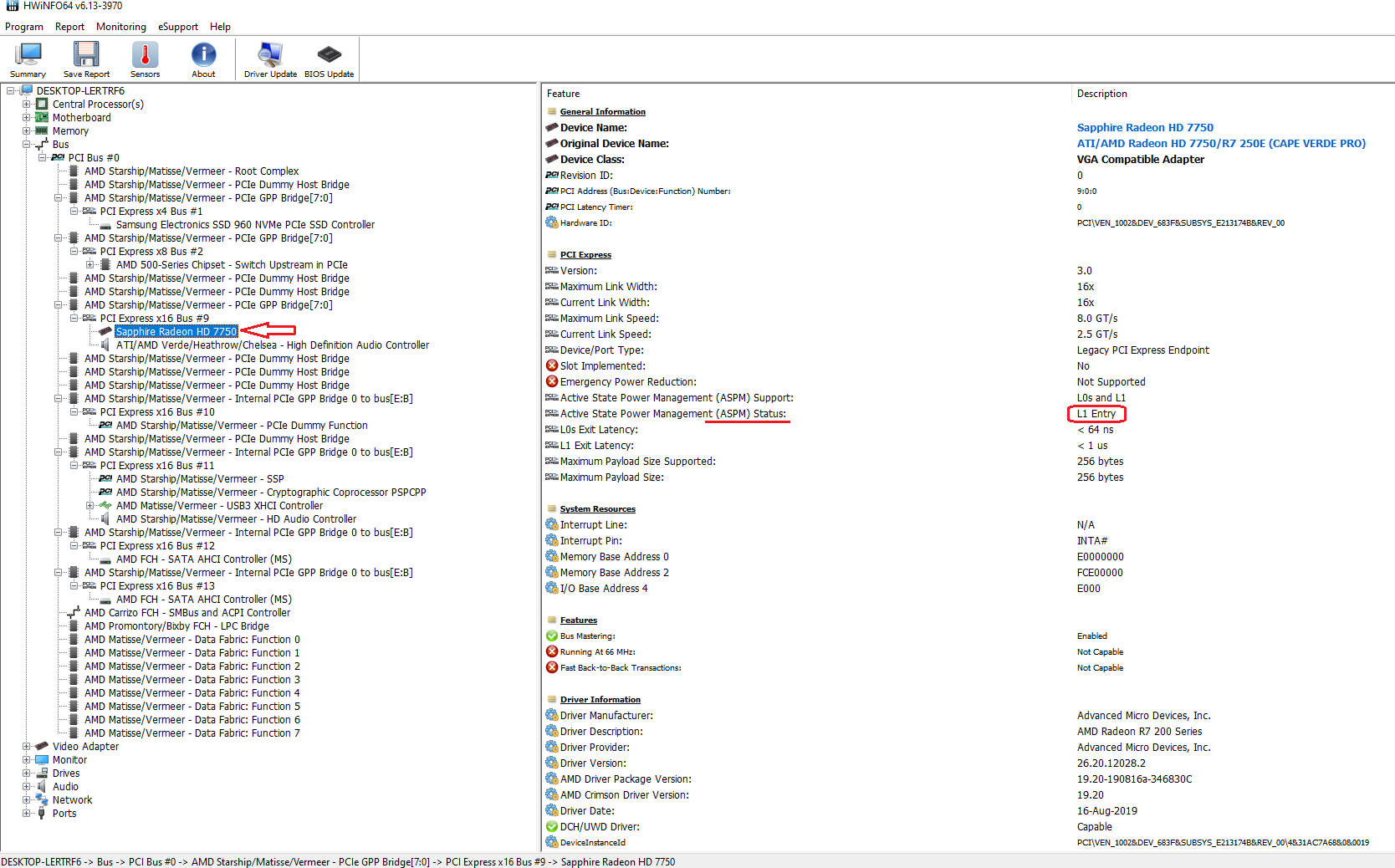 Um zu sehen was mit den PCI-Express-Verbindungen der CPU und des Chipsatzes passiert, ist das Tool HWiNFO recht hilfreich, da es nicht nur die unterstützten ASPM-Modi, sondern auch den tatsächlichen ASPM Status des jeweiligen PCI-Express Buses anzeigt.
