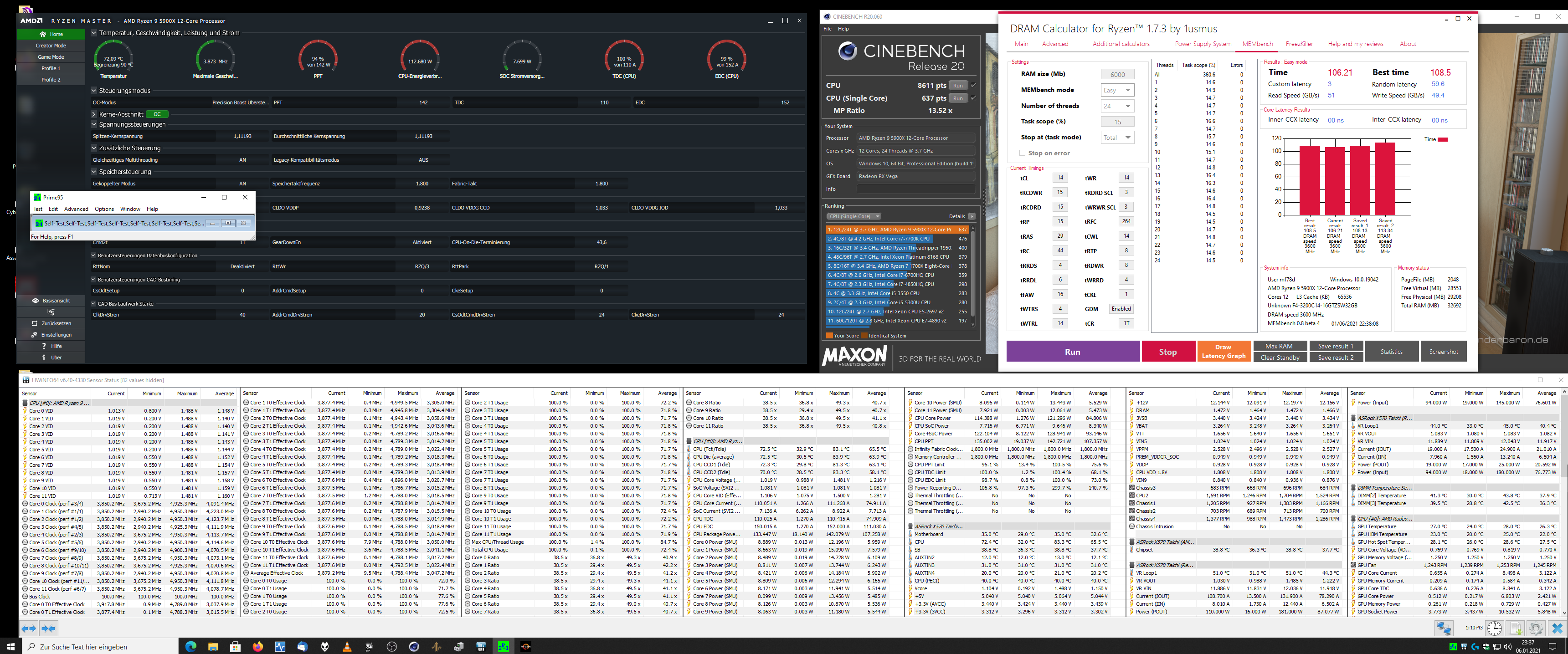 X570 Taichi mit 1.1.9.0 (V3.91beta) und luftgekühlter 5900X: