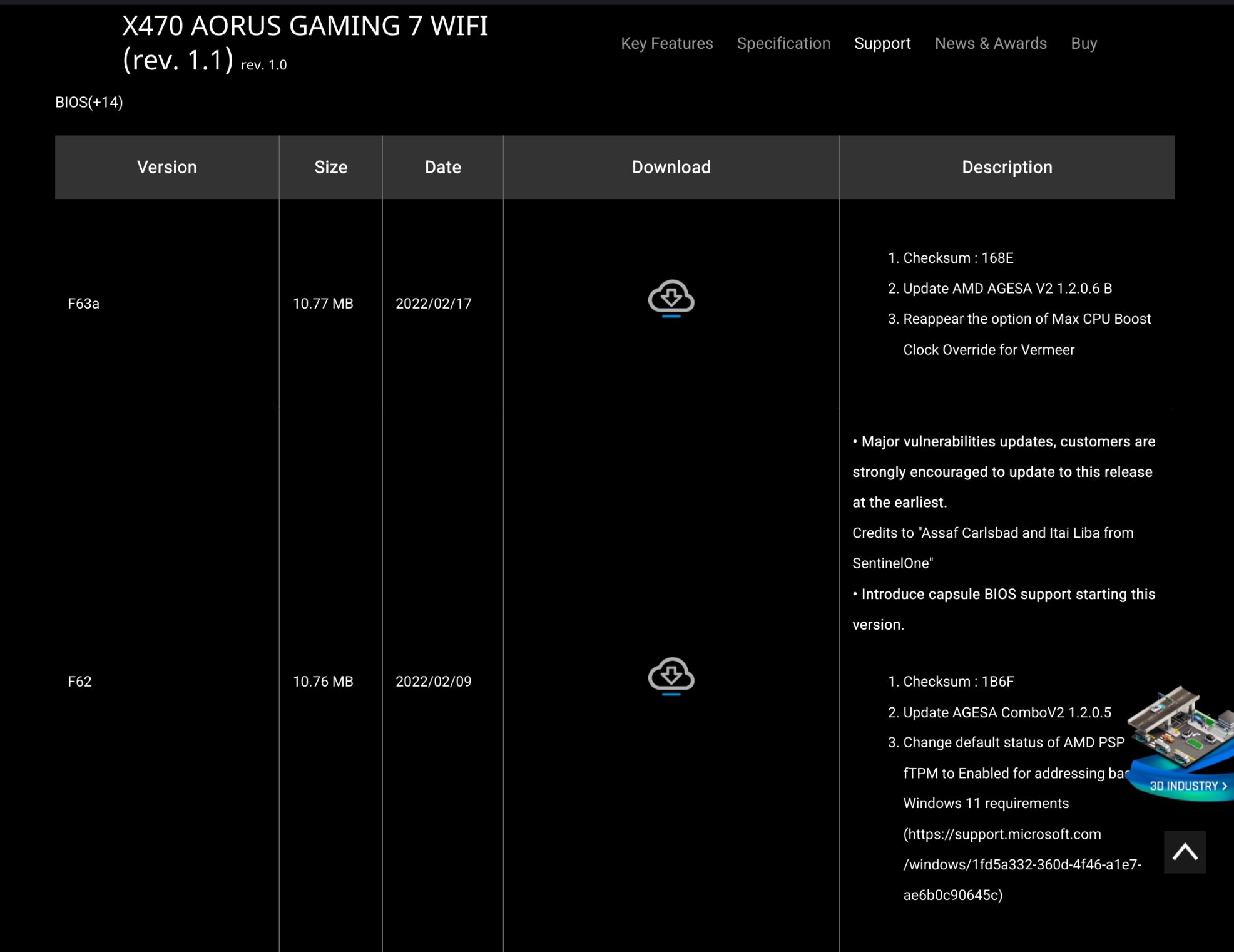 Gigabyte bietet einfach kein S.A.M.-Support für Zen+ Prozessoren.