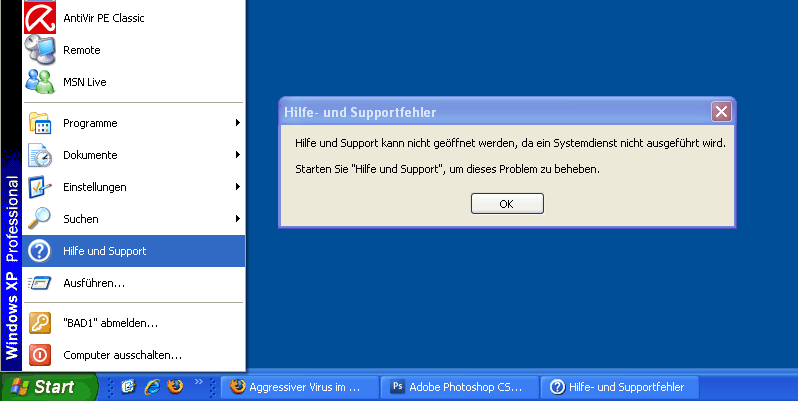 SmitFraudFix konnte das Problem auch nicht beheben.