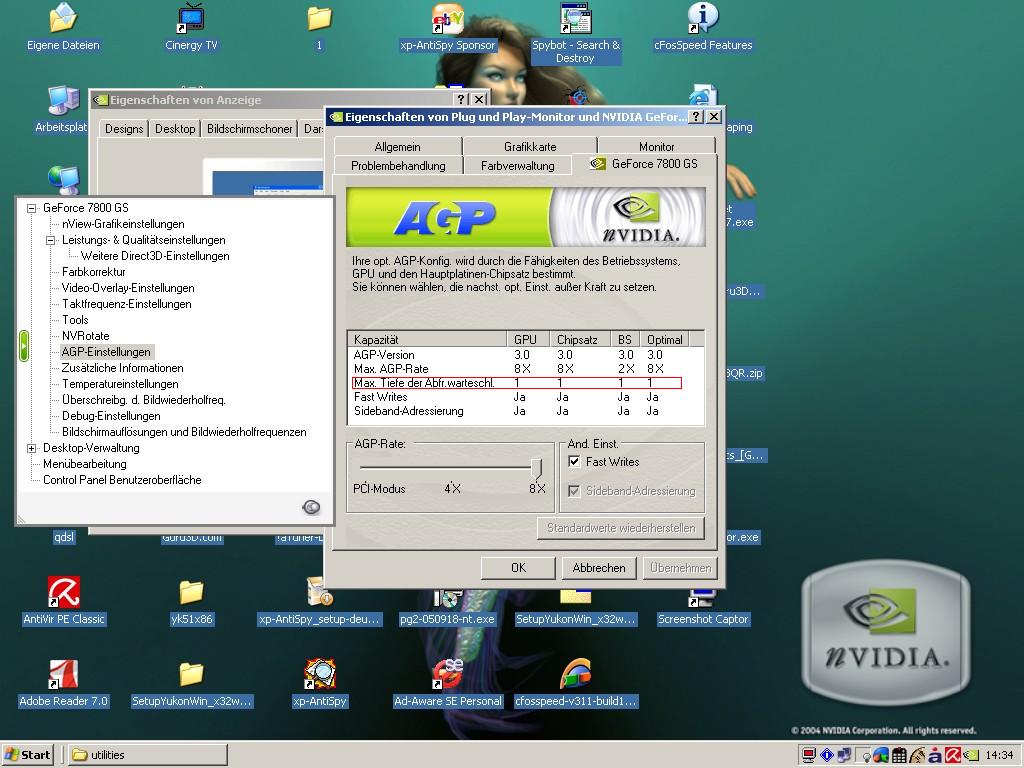 Mein Meinbord P4P800 SE hat eine In-Order Queue Depth 32 (Befehlswarteschlangenlänge) und meine Grafikkarte Geforce 7800GS AGP eine In-Order Queue Depth 256 (Befehlswarteschlangenlänge) aber in dem ForceWare Treiber bei eingeschalteten forceware coolbits steht das es nur eine In-Order Queue Depth 1 (Befehlswarteschlangenlänge) eingeschaltet ist.