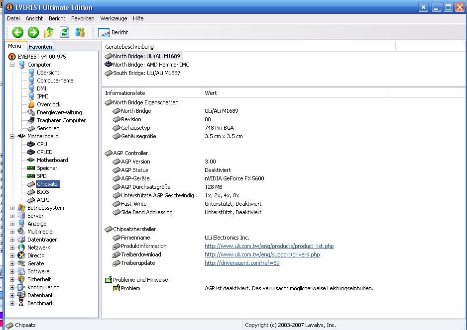 Ich habe vor einiger Zeit mit dem Progi EVEREST entdeckt, dass AGP bei mir deaktiviert wäre?!