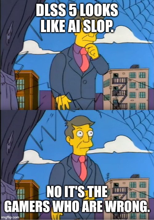 Wie soll man da auch anders drauf reagieren, wenn die Leute mit diesen Meinungen was DLSS5 macht eben wirklich komplett falsch liegen?
