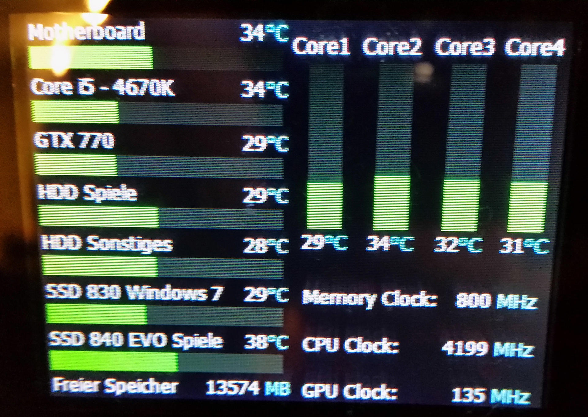 Ich nutze für die Anzeige meiner Systemwerte das Tool Aida64, welches denke ich hinreichend bekannt sein dürfte.