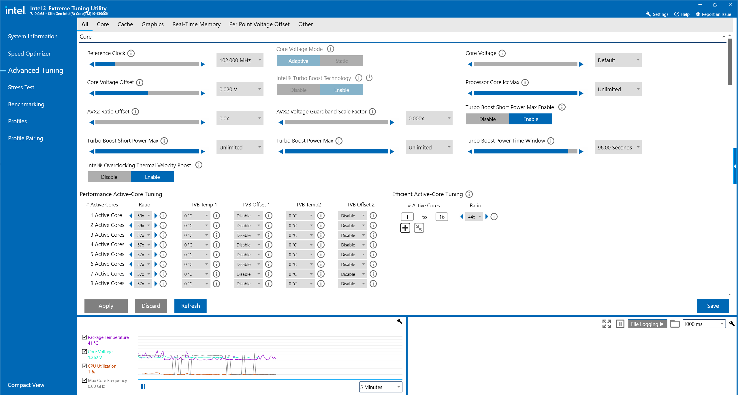 Das Intel XTU in Version 7.10.0.65 (Initiales Release) hat noch den einen oder anderen Bug, wie ich eben feststellen durfte. Bleibt teilweise hängen oder zeigt Werte an, welche nicht definiert sind. Hoffe, ein fehlerbereinigtes Build folgt in Kürze. Aber grundsätzlich ein tolles Tool.
