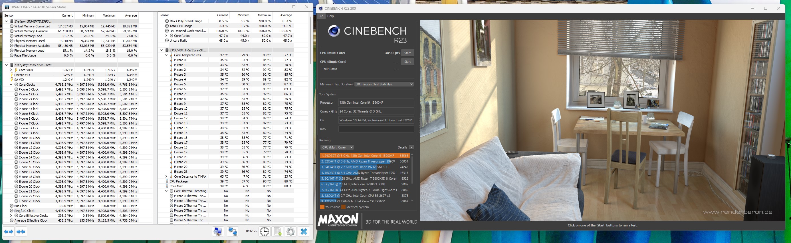 Jetzt habe ich den Stability Test von Cinebench gemacht. Für 30 min lang hat es gerendert, ohne jemals in TT zu gehen. Alle Cores sind auf 5499 mhz stabil geblieben.