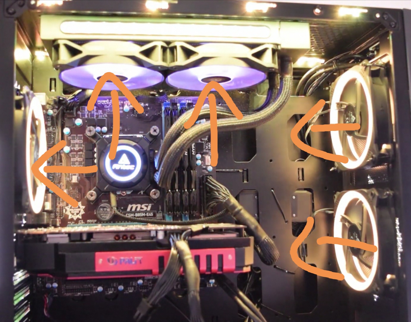 Dann habe 2x Lüfter vorne die einblasend und 3x Lüfter (2x Deckel, 1x Hinten) ausblasend funktionieren, korrekt?