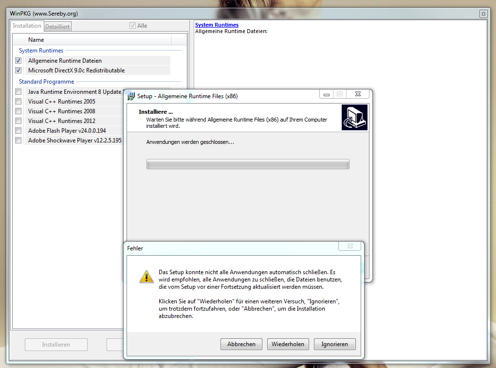 ich habe vor kurzem den aio-runtimes_v2.4.0 ausgeführt und diese System Runtimes wurden mit einem Fehler beendet: