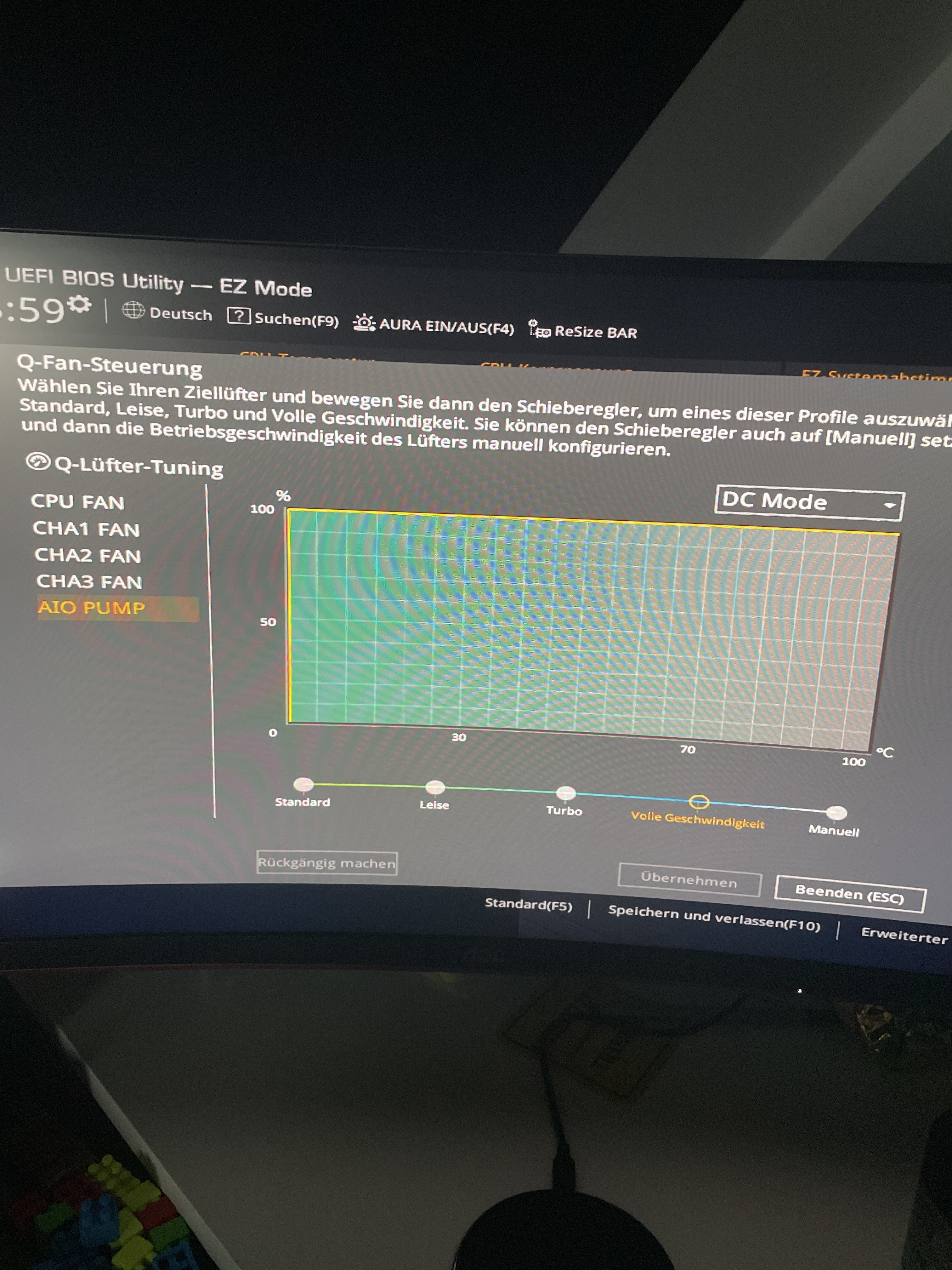 schau erstmal im Bios nach der Lüfterkurve und stell auf DC um und volle Power zum testen sonst kommen wir hier nicht weiterloocoo schrieb:Ah okay, ich werde nun checken das alles Gleichmäßig angezogen ist und dann die Lüfter seperat ansteuern, der Stecker an der Pumpe bleibt bei AIO