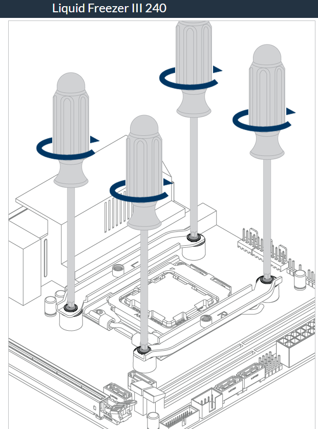 Passt allein schon nicht von der befestigung. Bei mir kommen die 4 Standartschrauben die vorher meinen Kühlkörper gehalten haben von hinten wo man sie einfach nur draufstecken musste und festschrauben, nun soll ich scheinbar den Kühlkörper mit eigenen Schrauben von vorne festschrauben(siehe Bild), kann aber ja nicht gehen da die 4 Schrauben schon von hinten rein kommen ?!