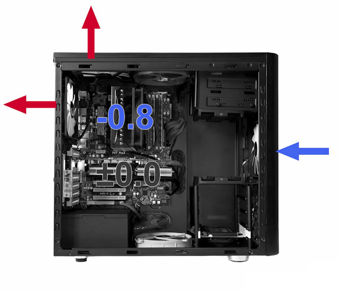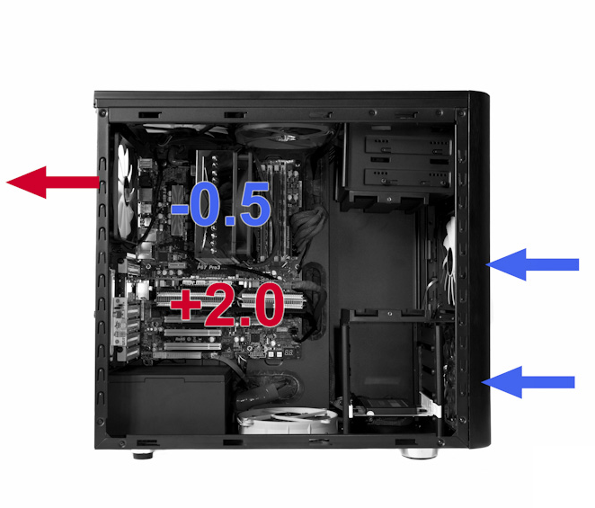 Einer der Lüfter aus der Front soll nach oben und unten soll einer der folgenden rein: