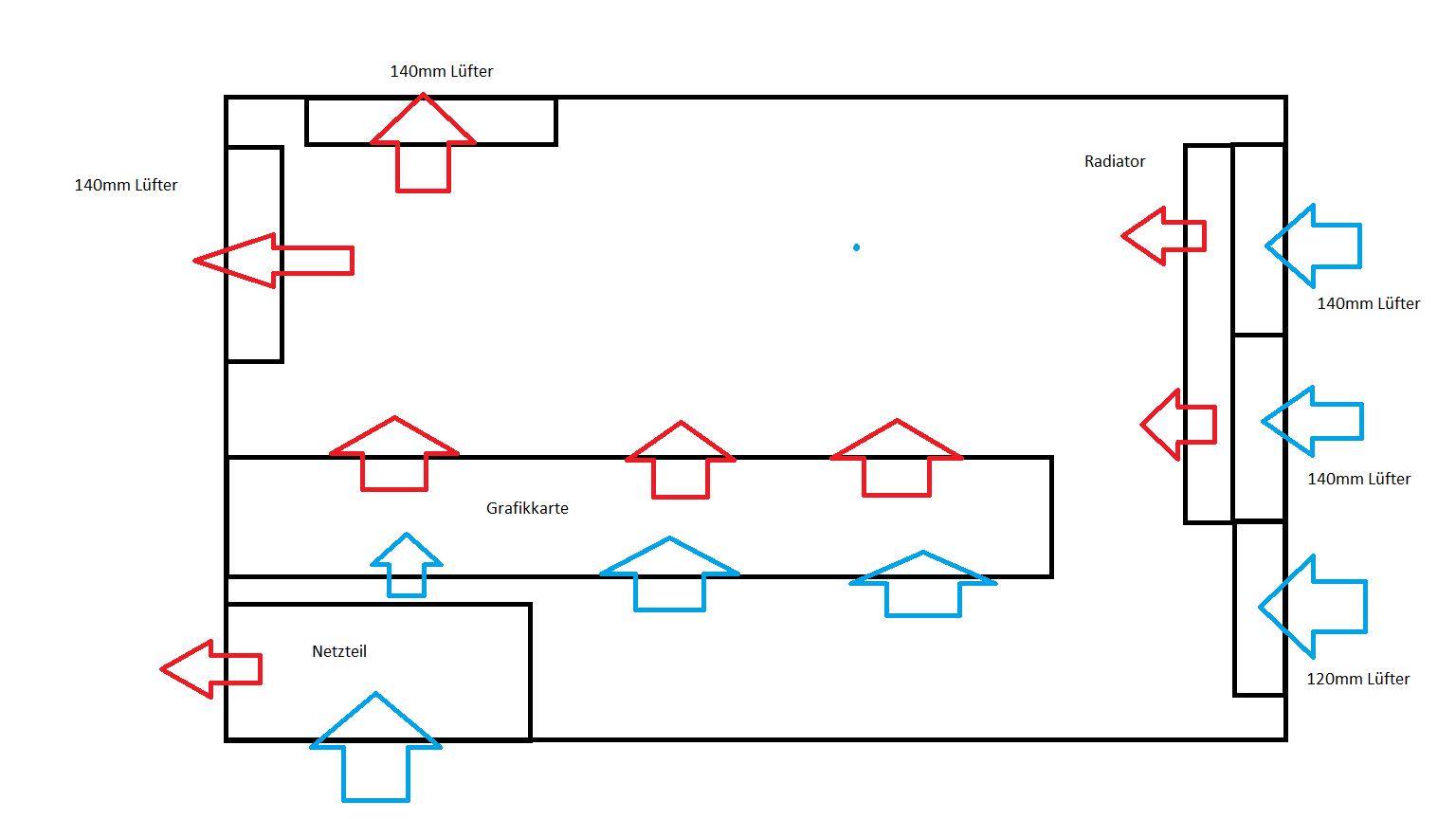 ich wollte mal eure Meinung dazuhören und zwar besitze ich das Silent base 601 und wollte mein Airflow bisschen verbessern und habe 2 Varianten die in Frage kommen könnten und habe dies mal mit Paint gezeichnet und wollte mal hören was ihr dazu sagt ob er so schonmal erfahrung gemacht und ob das funktioniert.