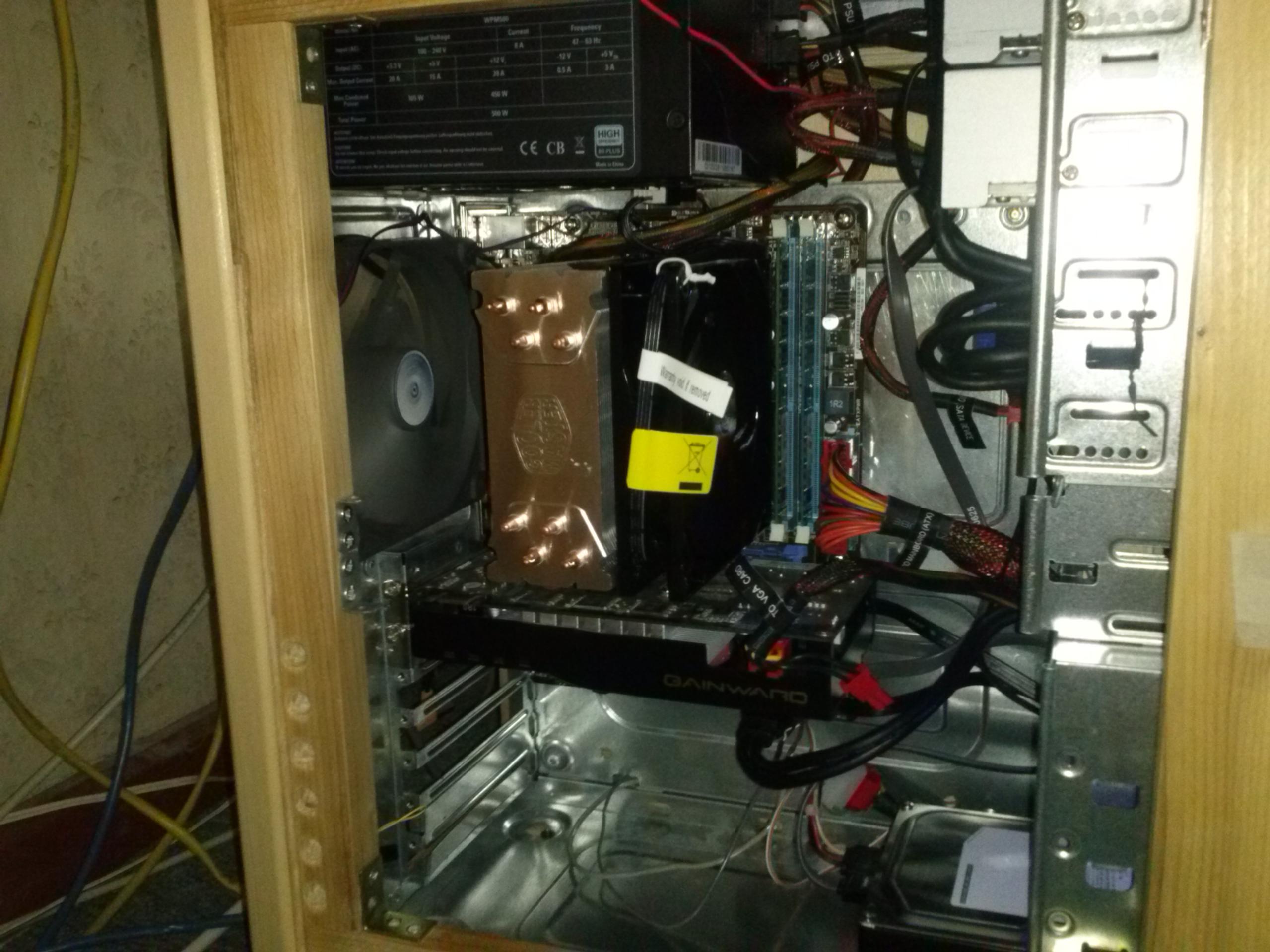- Den Kühler gedreht anbringen und die Luft, mit dem eigentlich hinten angebrachten Lüfter, oben hinausblasen.