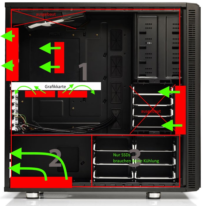ich wollte mich mal erkundigen ob ich die Optimalen Lüfter im Gehäuse (http://geizhals.de/fractal-design-define-xl-usb-3-0-schwarz-fd-ca-def-xl-usb3-bl-a686613.html) habe, ich denke das der Airflow nicht stimmt weil die Temperaturen irgend wie zu hoch sind von der CPU. Ich habe einen EKL Alpenföhn Himalaya 2 mit zusätzlich einen 120er: http://geizhals.de/be-quiet-silent-wings-pure-120mm-bl043-a532012.html drauf. Trotts alledem sind die Temps bei den 2500K mit 4GHz bei 1,09Volt beim Spielen um die 55C°. Laut test´s müsste ich aber niedriger liegen.