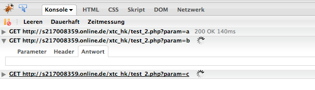 Mein Problem ist das die Abfragequeue scheinbar in Firefox nicht funktionier. In Google Chrome funktioniert alles Prima. Aber im FF führt er nur 2 Abfragen aus und in Firebug sehe ich folgendes Bild hier klicken