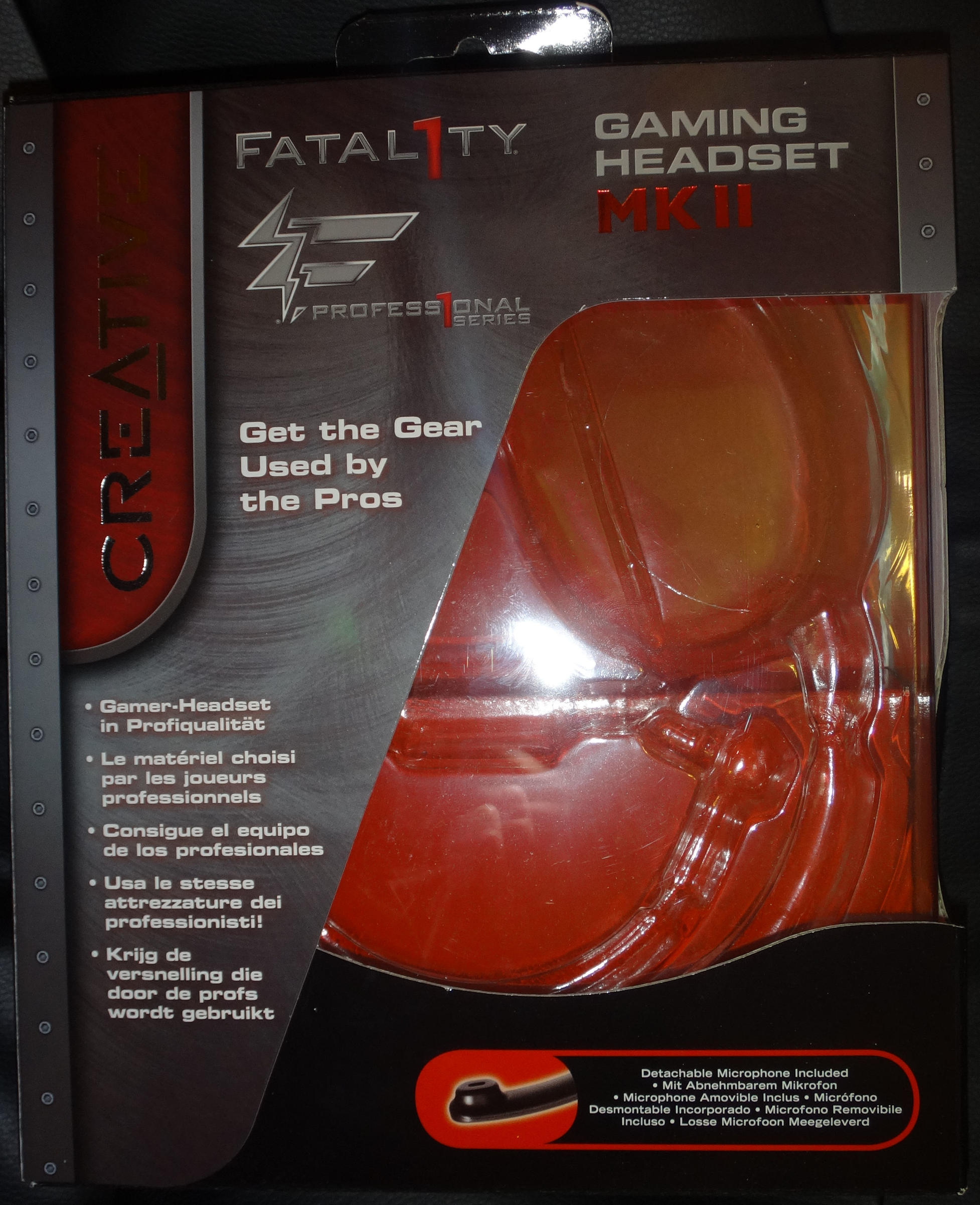 Das Creative Fatal1ty Mk II kommt in einer einfachen Verpackung mit Sicht auf das in klarem PVC verpackte Headset.