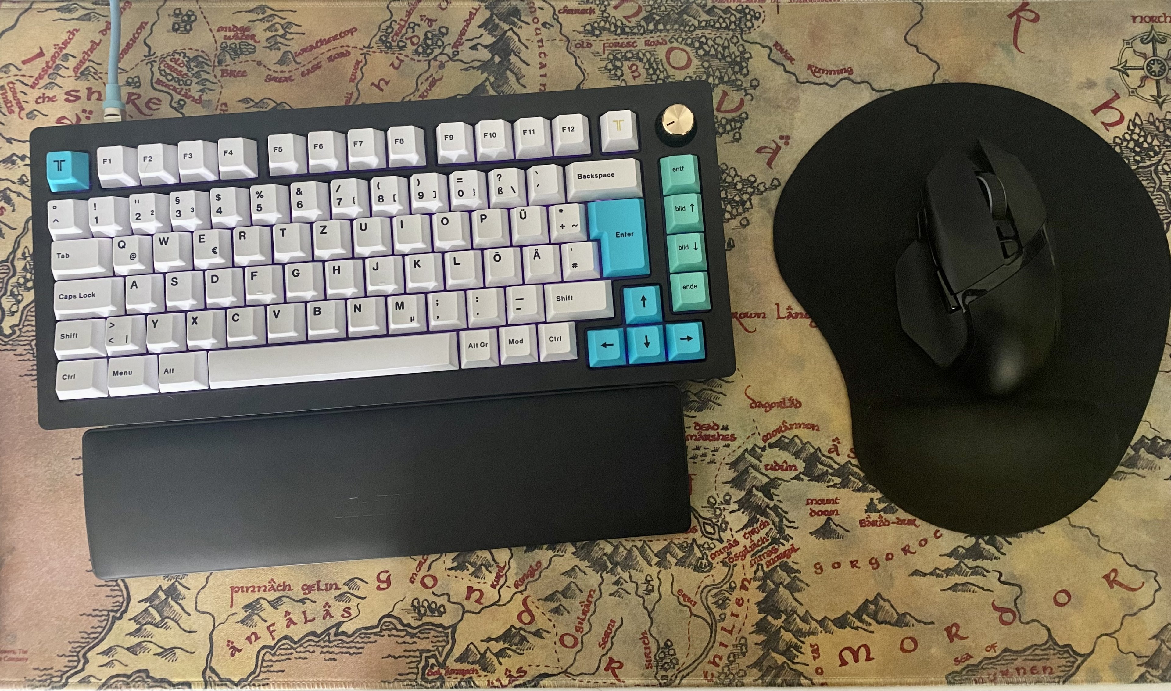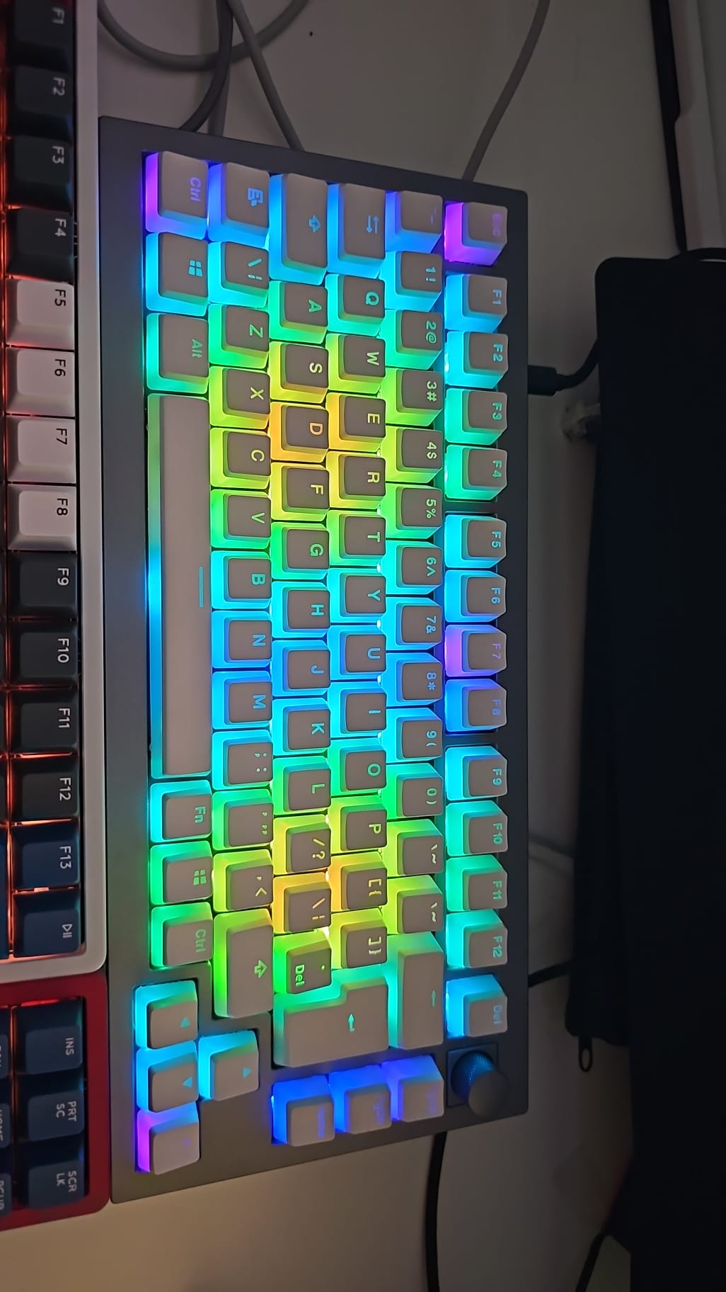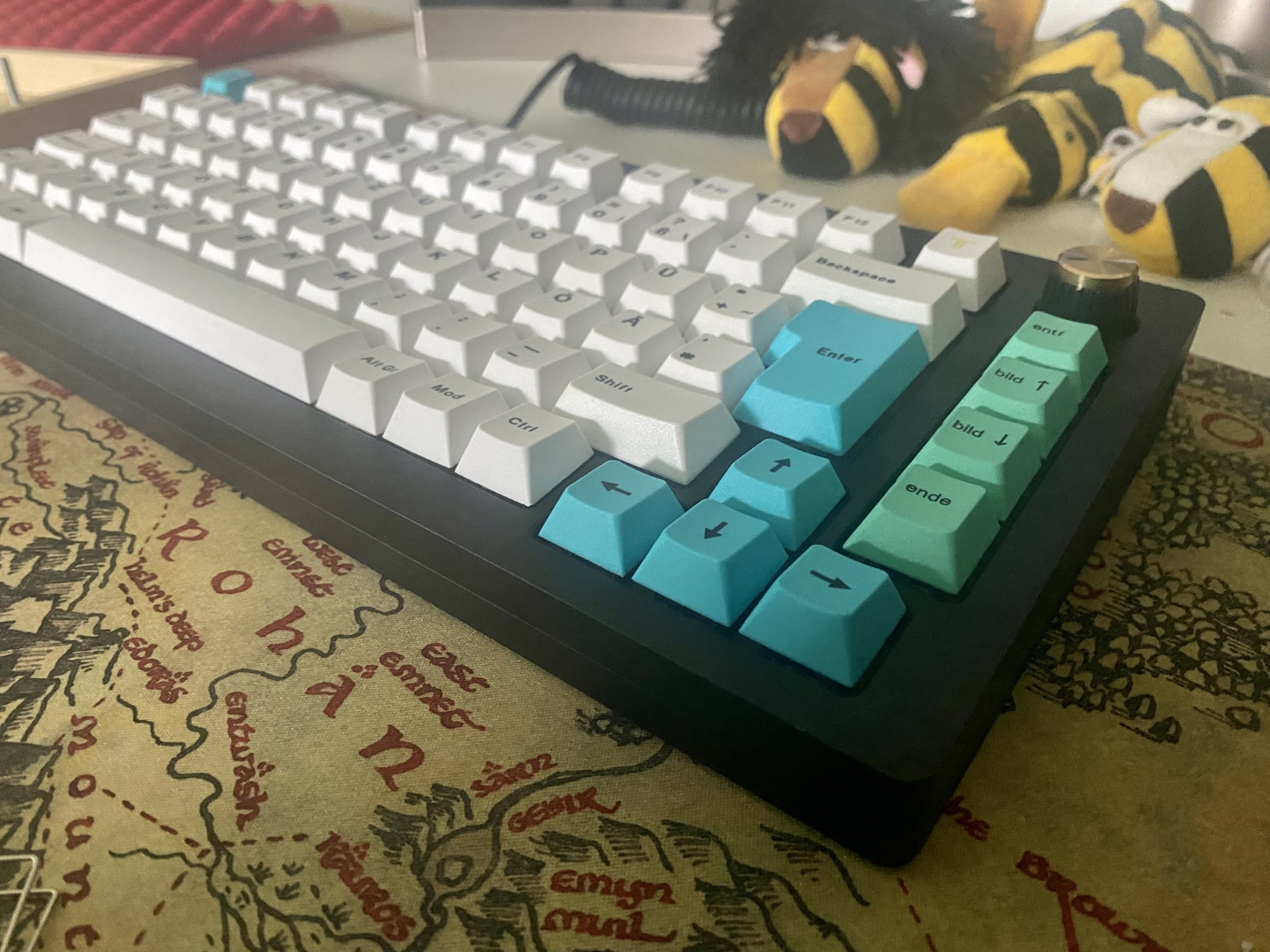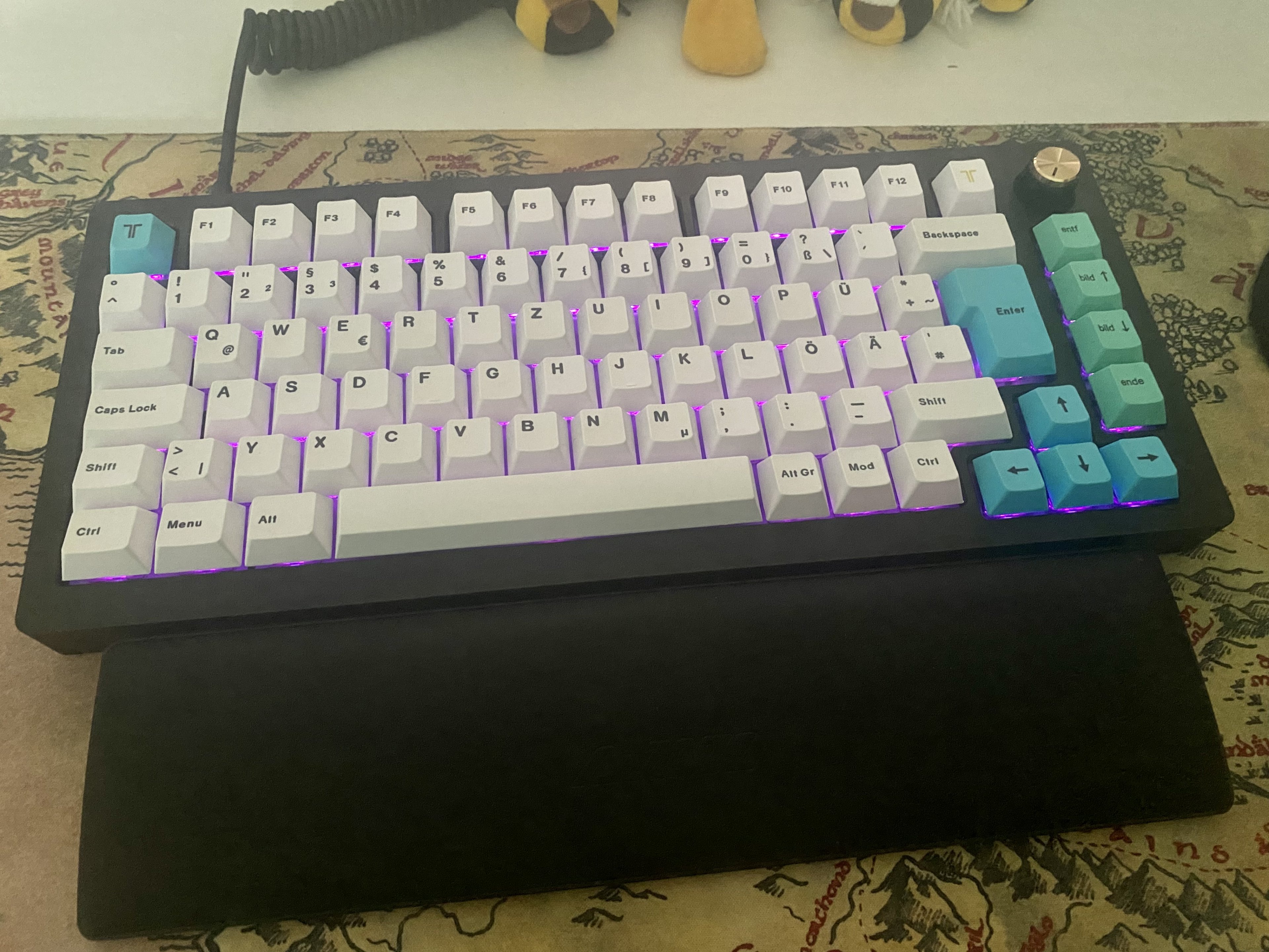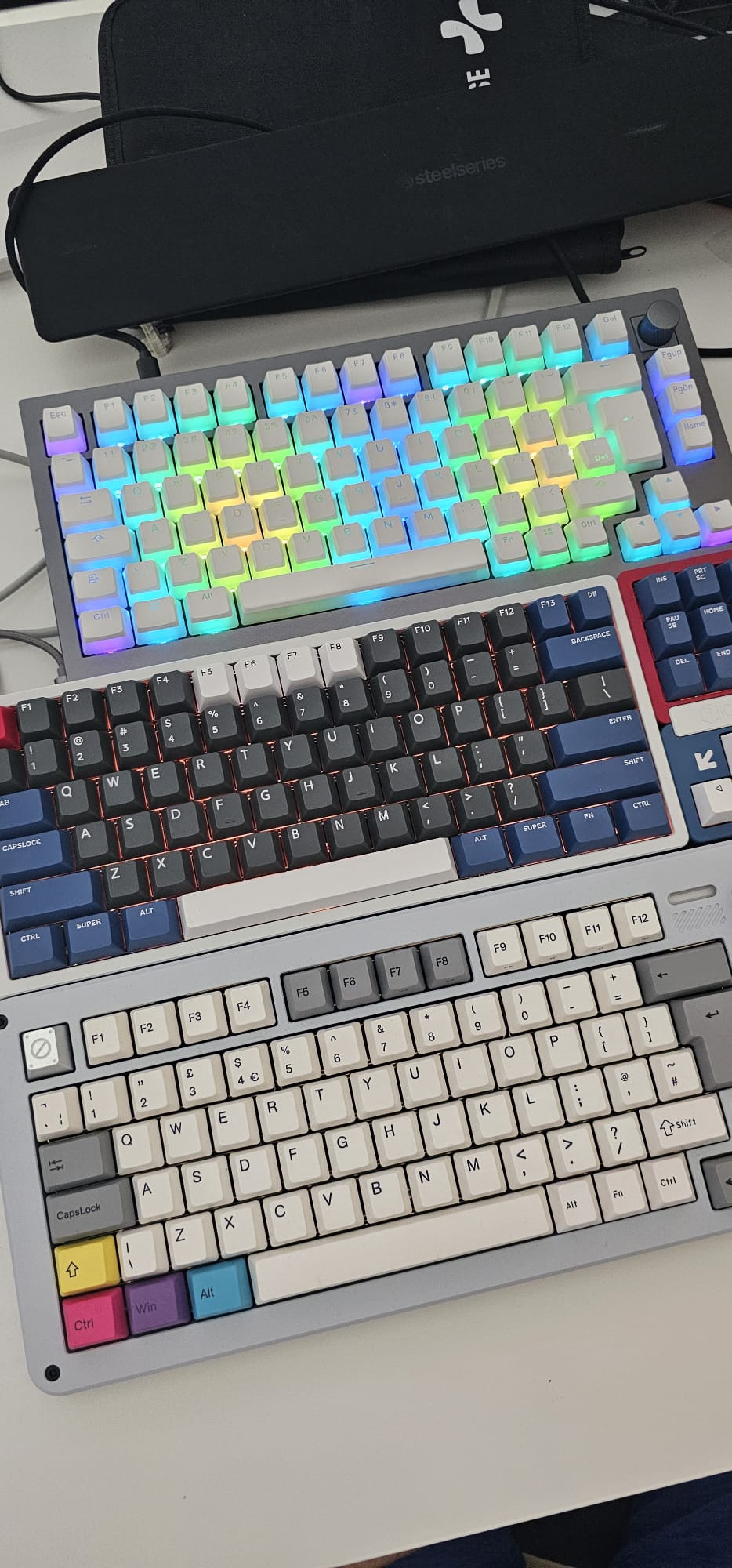 Keychron optical muss übrigens nicht immer langweilig aussehen, siehe zweites Bild mit "Pudding Caps". Zur Inspiration mal drei meiner 75%er - ich mag das Format noch gerne für Tage, an denen ich nicht viel Exceln muss.