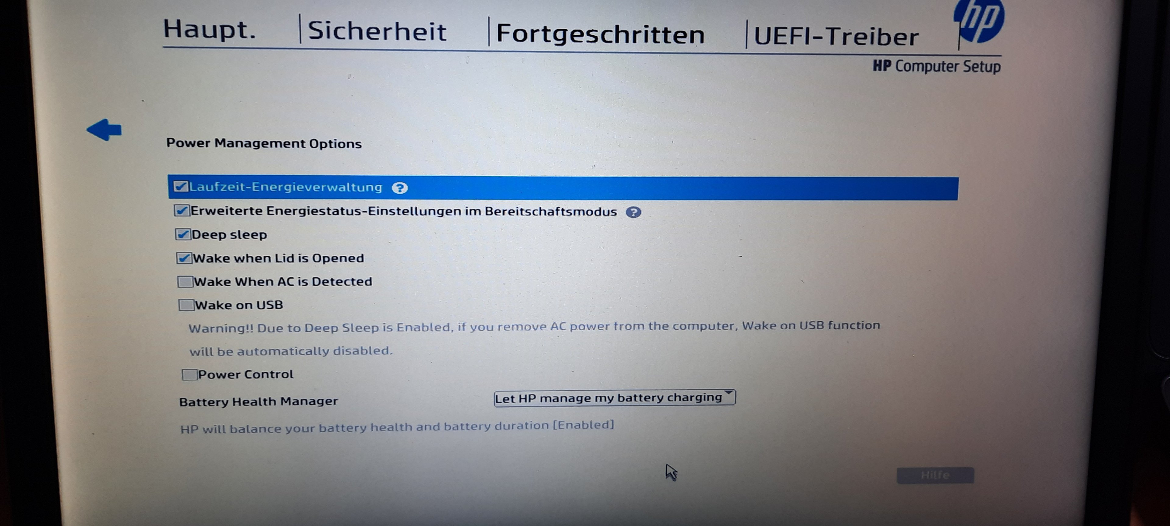 ich rätsle seit Tagen an einem Problem rum was ich mit meinem HP Elitebook 840 G4 mit Windows 10 habe. Trotz neuem Akku entlädt sich der Rechner im ausgeschaltetem Zustand so etwa um 12% jeden Tag. Ich habe bereits versucht die Energieoptionen zu ändern, Schnellstart zu deaktivieren und sämtliche Systemupdates gemacht, die Situation bleibt gleich.