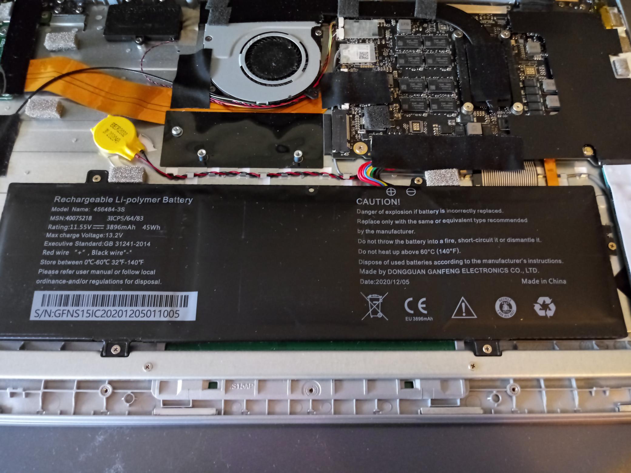 Ich hatte gestern meinen Arbeitslaptop für unterwegs, den ich nun ca. 2 Jahre habe, mal geöffnet, entstaubt und die Wärmeleitpaste erneuert. Dabei ist mir aufgefallen, das der interne Akku etwas "ungleichmäßig" erscheint. Ich bin mir nicht sicher in wie weit das alles im Rahmen ist oder ob sich hier schon das klassische Aufbähen zeigt? Bei meinen anderen Notebooks waren bisher auch immer andere Formen von Akkus verbaut, daher fehlt mir hier der direkte Vergleich. Bei den Bilder zu entsprechenden original Ersatz-Akkus lässt sich leider auch nicht wirklich erkennen ob die alle so aussehen (gibt immer nur ein Foto von oben und von der Rückseite, in eher schlechter Qualität).