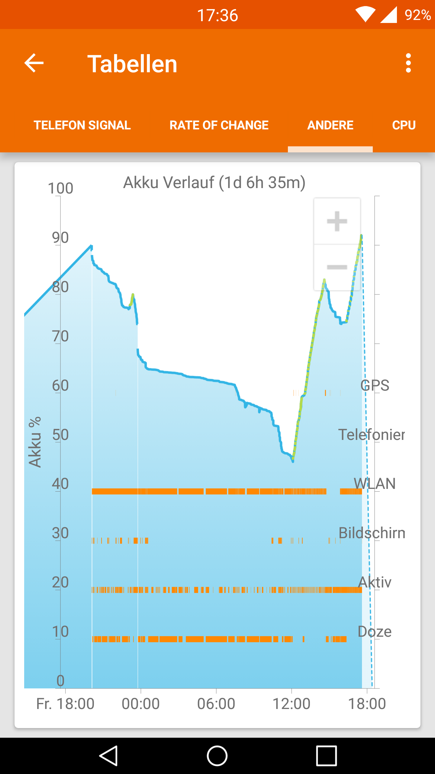 Android OS steht ganz oben in der Liste des Verbrauches, sogar über dem Display, wenn das Handy stundenlang nicht bewegt wird...