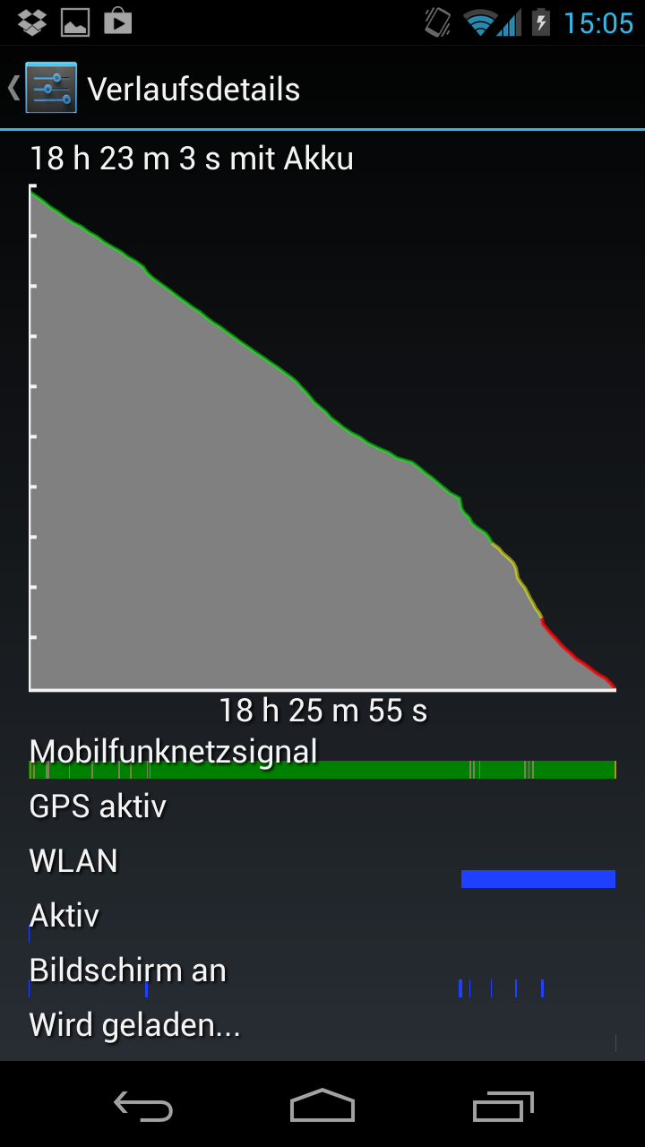 Sonst hält bei solch einer geringen Nutzung bei mir der Akku vom Galaxy Nexus locker und leicht 2-3 Tage. Wie man den Bildern entnehmen kann soll ja hauptsächlich "Android OS" mit 52% dafür verantwortlich sein, dass der Akku leer ist, aber das macht sonst nur geschätzte ~5-10 % aus (ich kann mich hier auch leicht irren).