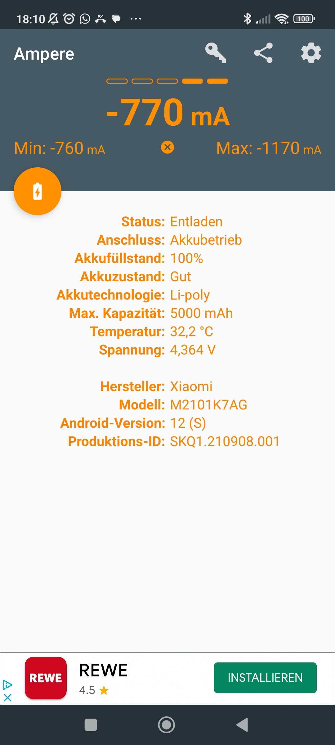 Ich vermute, dass dein Phone bei 100% keine rd. 5000mAh Kapazität besitzt.