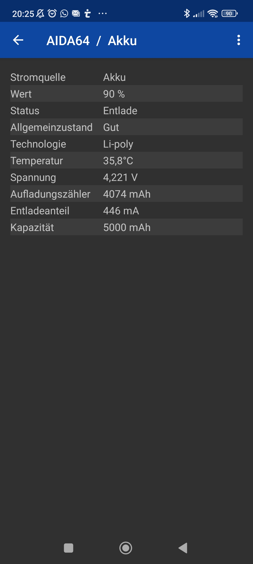 Bzgl. der max. Kapazität: Im Screenshot Post #15 hast du ja auch max. 5000mAh stehen, obwohl der Akku nur 25% hat.