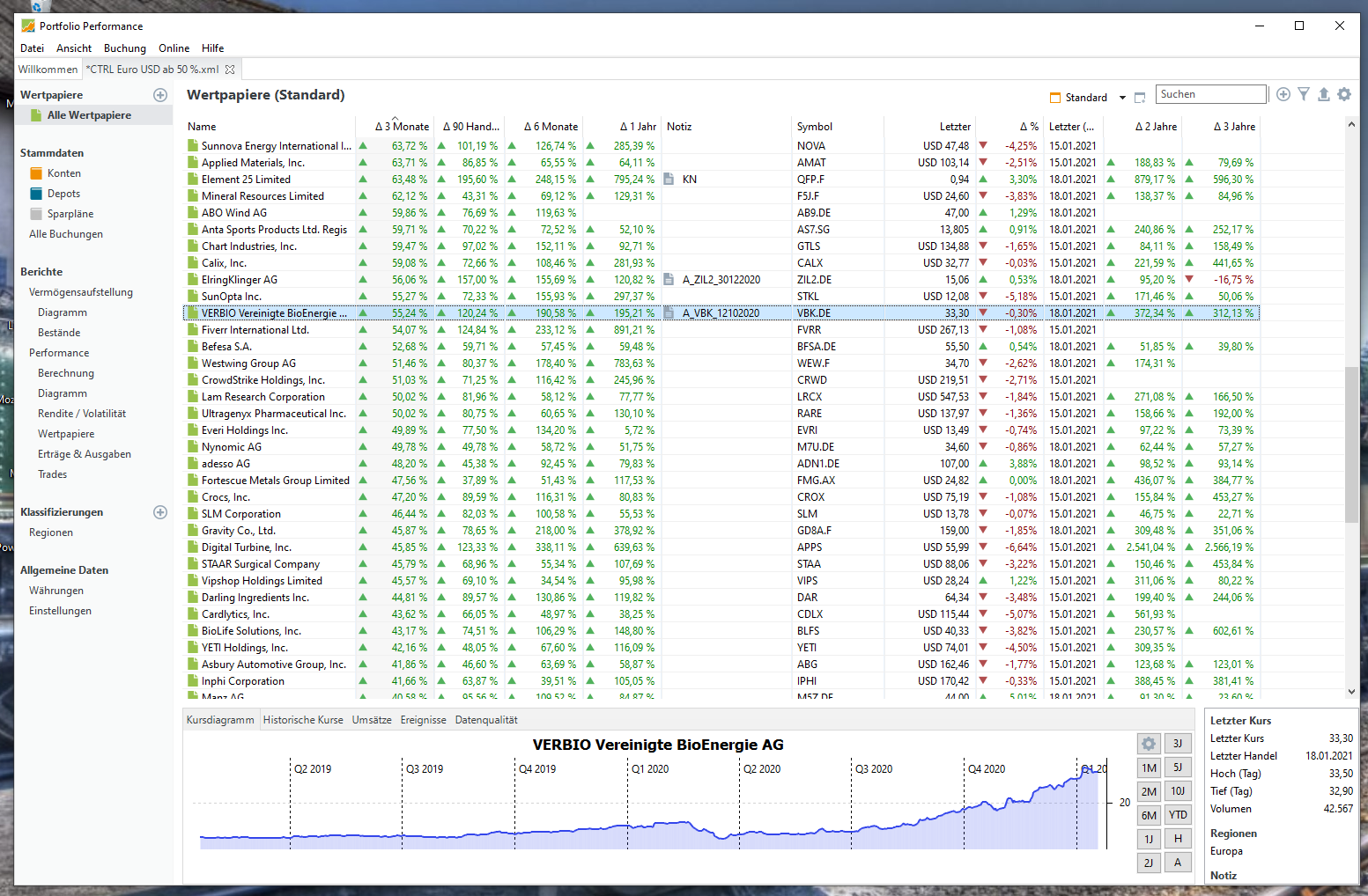 Die Liste habe vor ca. 1 Jahr angelegt, mit allen Werten die damals über 50 % standen.