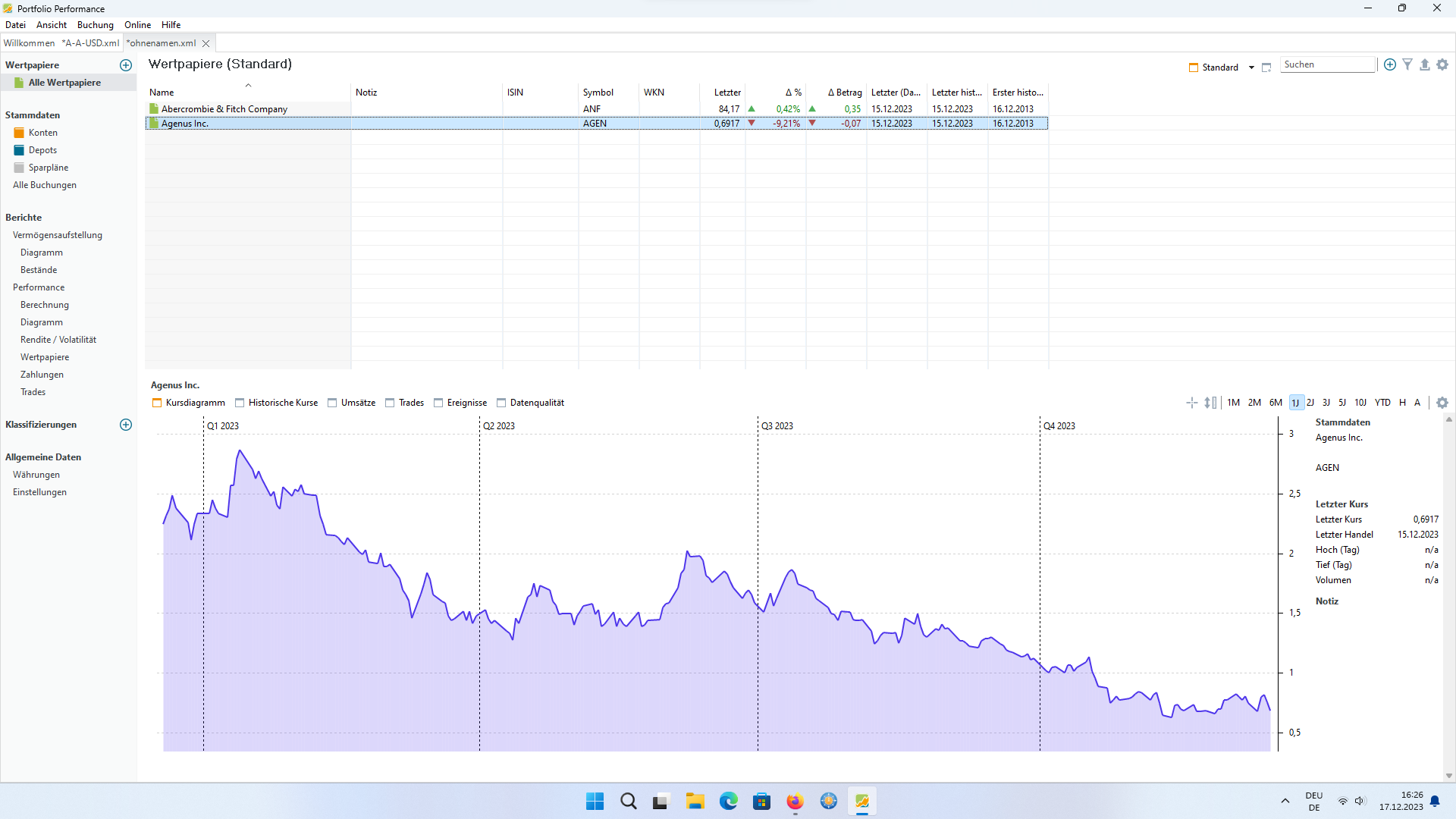 Aber ein Auszug aus meiner Aktien Liste, sagt mir, dass ich lieber in Abercrombie investieren möchte, als in Agenus.