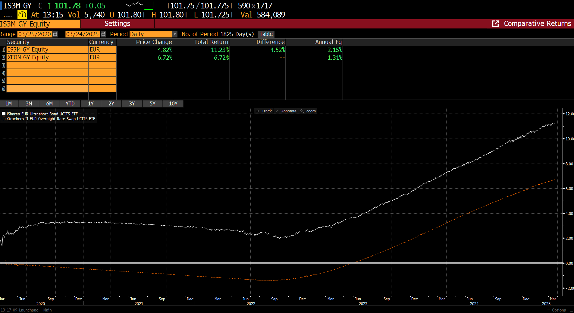 ich bin mir nicht sicher, wie der bei steigenden oder fallenden Zinsen reagiert. Immer parallel zum DBXOAN?Buddy_S. schrieb:Nein, aber die Vola ist fast genauso so niedrig wie beim Geldmarkt ETF und dafür gibt es halt etwas mehr Performance: